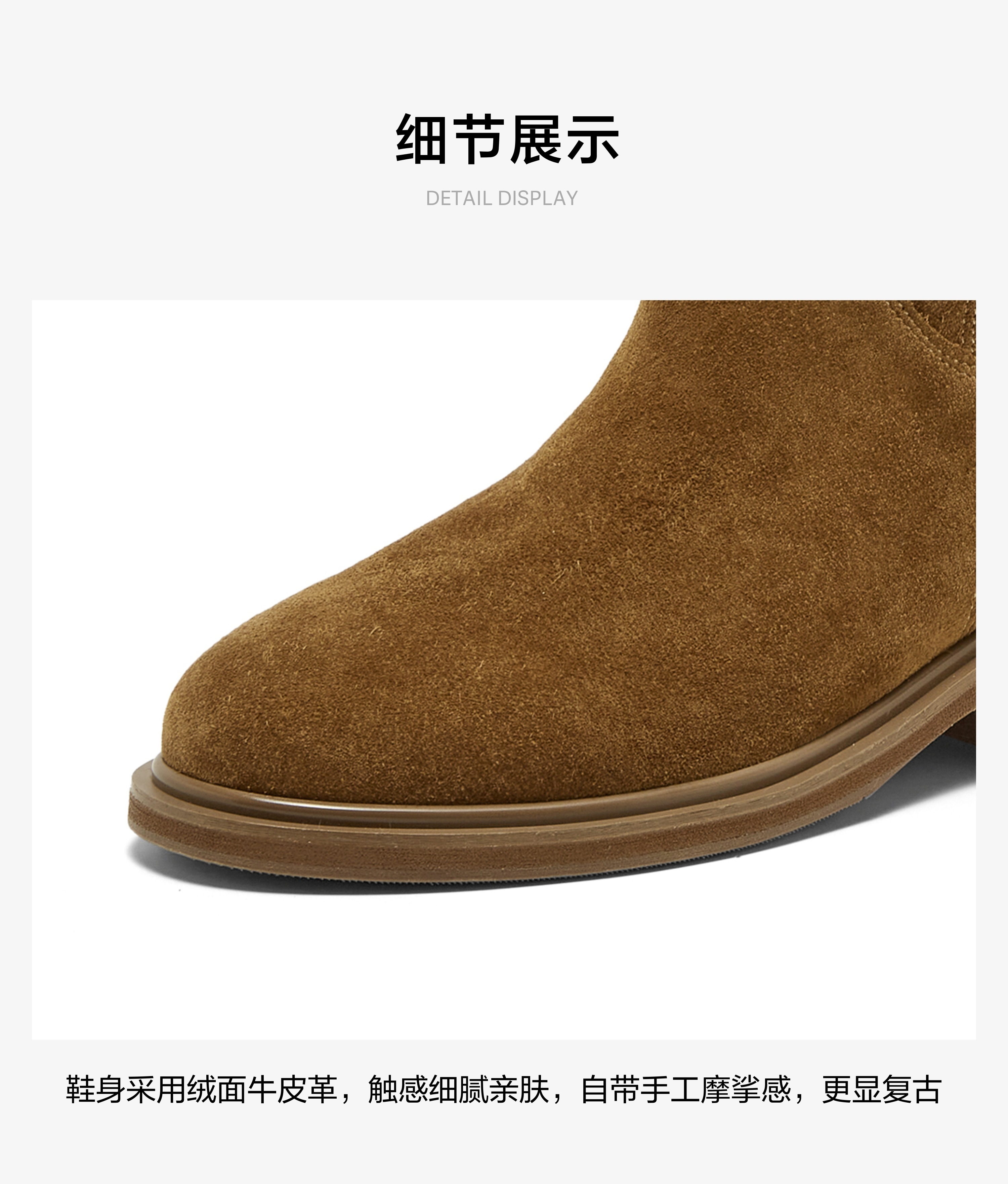 | 鞋底材质:橡胶底 | 靴筒内里材质:羊皮革 | 内增高:无 | 鞋面材质:牛皮革 | 闭合方式:侧拉链 |