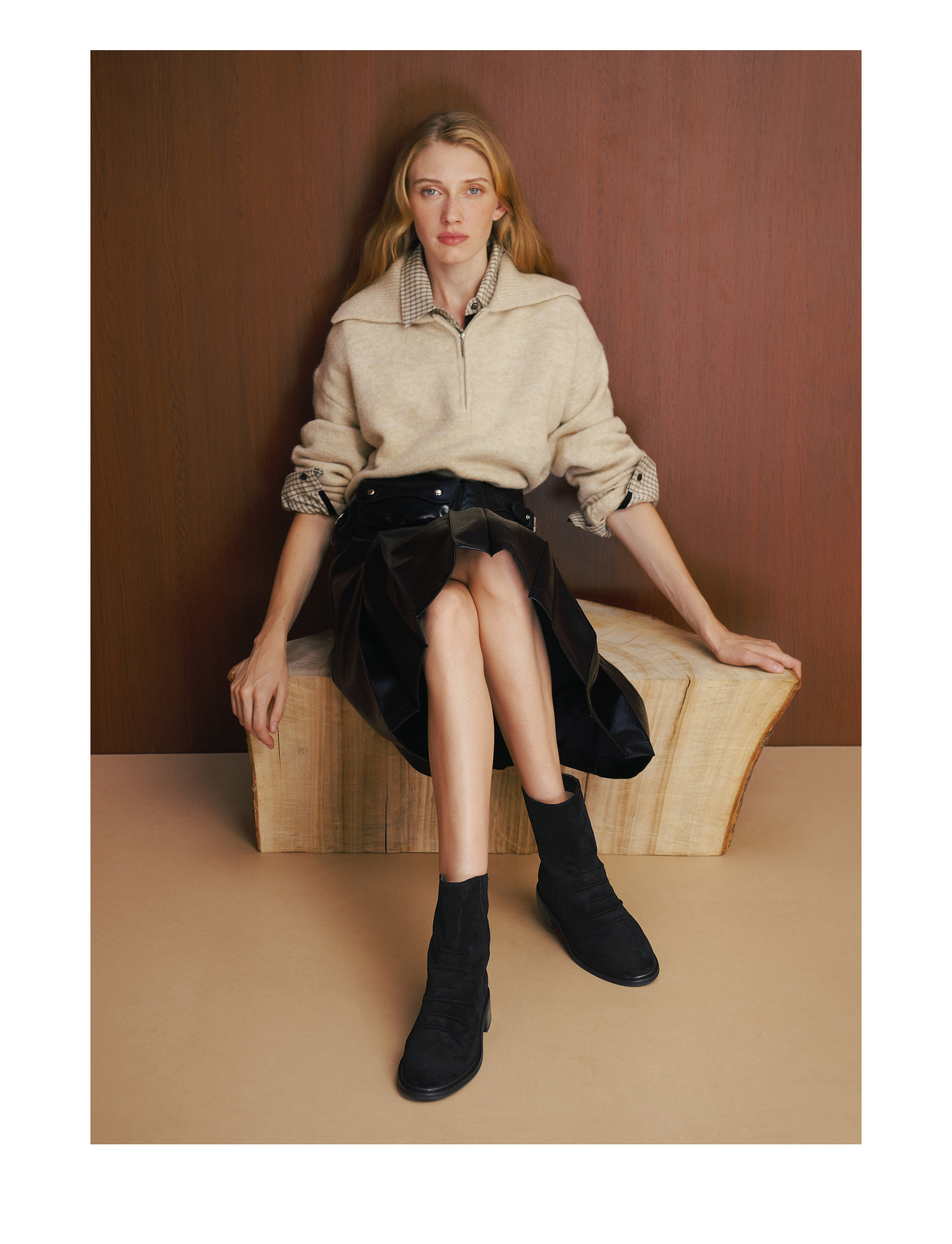 | 风格:OL通勤 | 鞋面内里材质:羊皮革 | 色系:黑色 | 跟高数值:4.5CM | 筒高数值:19.5CM |