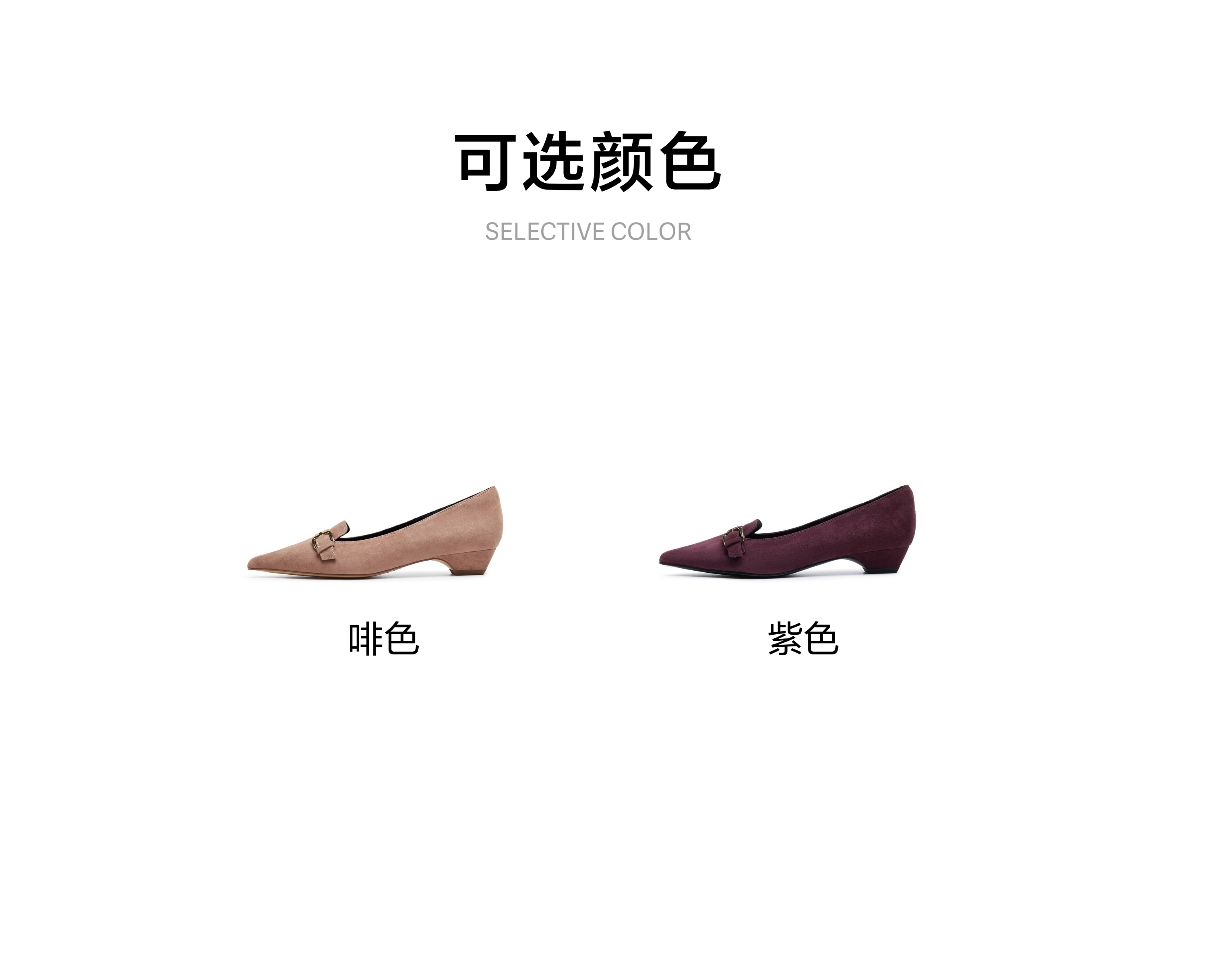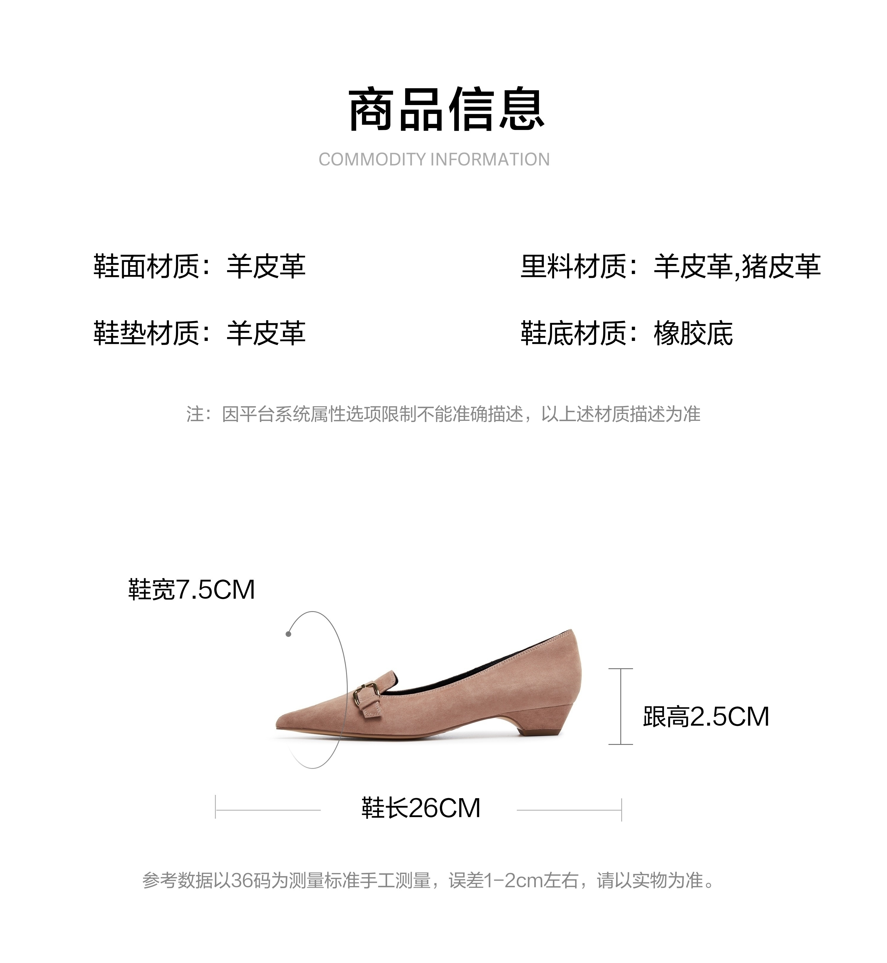 | 鞋头款式:尖头 | 鞋底材质:橡胶底 | 鞋面图案:纯色 | 鞋跟形状:粗跟 | 鞋面材质:羊皮革 |