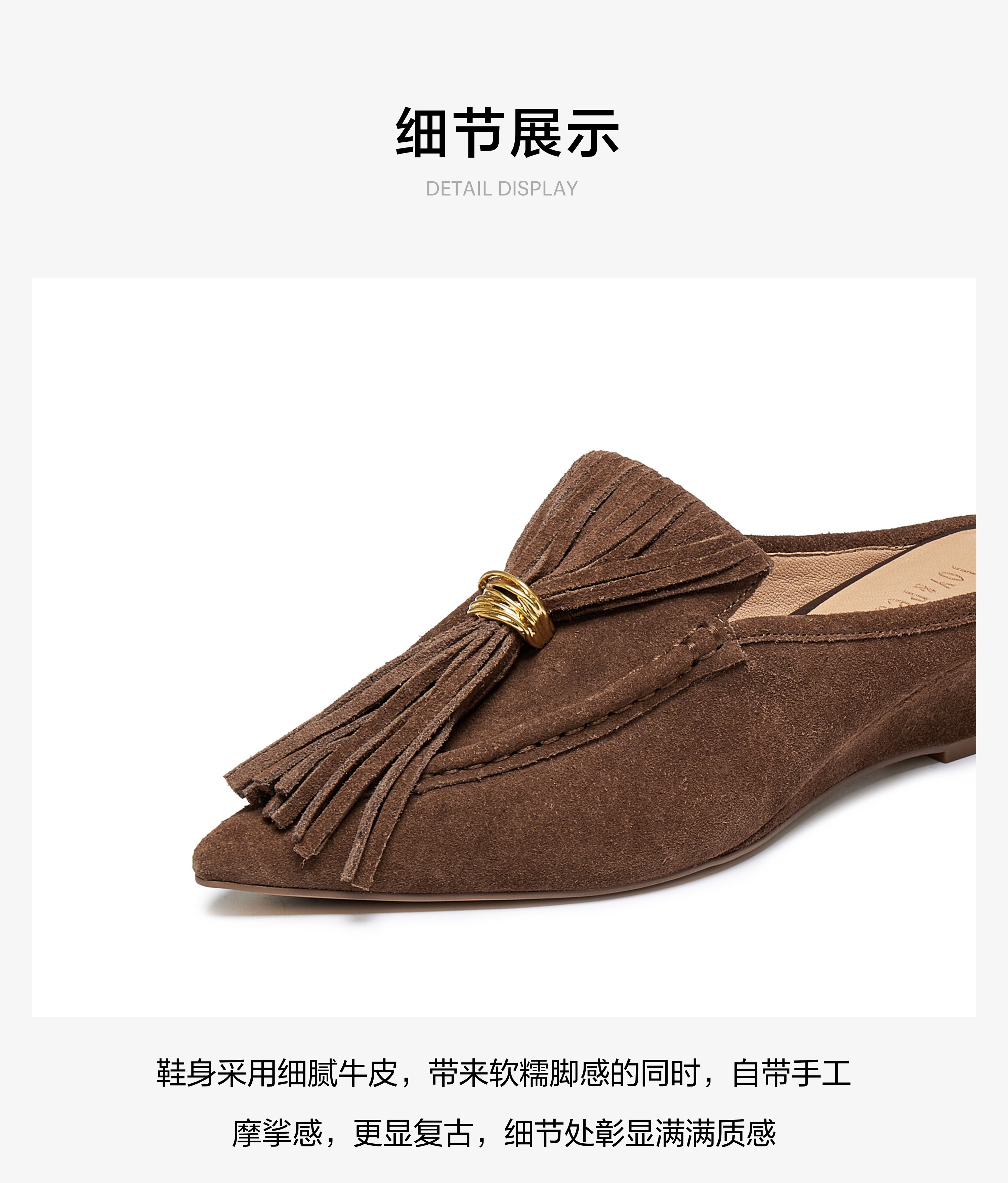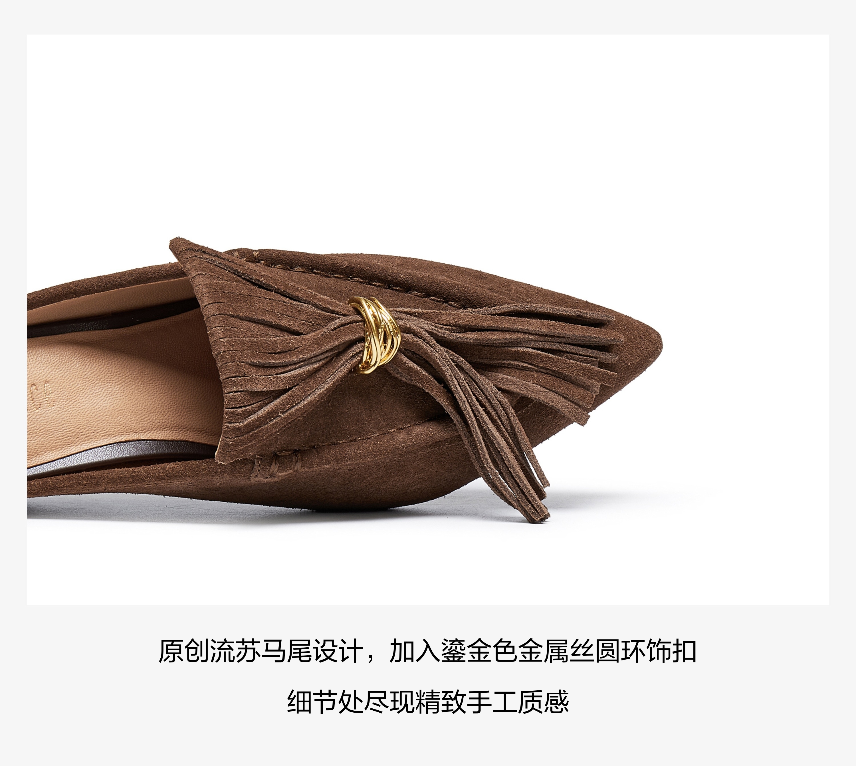 | 鞋面内里材质:羊皮革 | 色系:咖啡色 | 跟高数值:5CM | 配跟:无 | 性别:女子 |