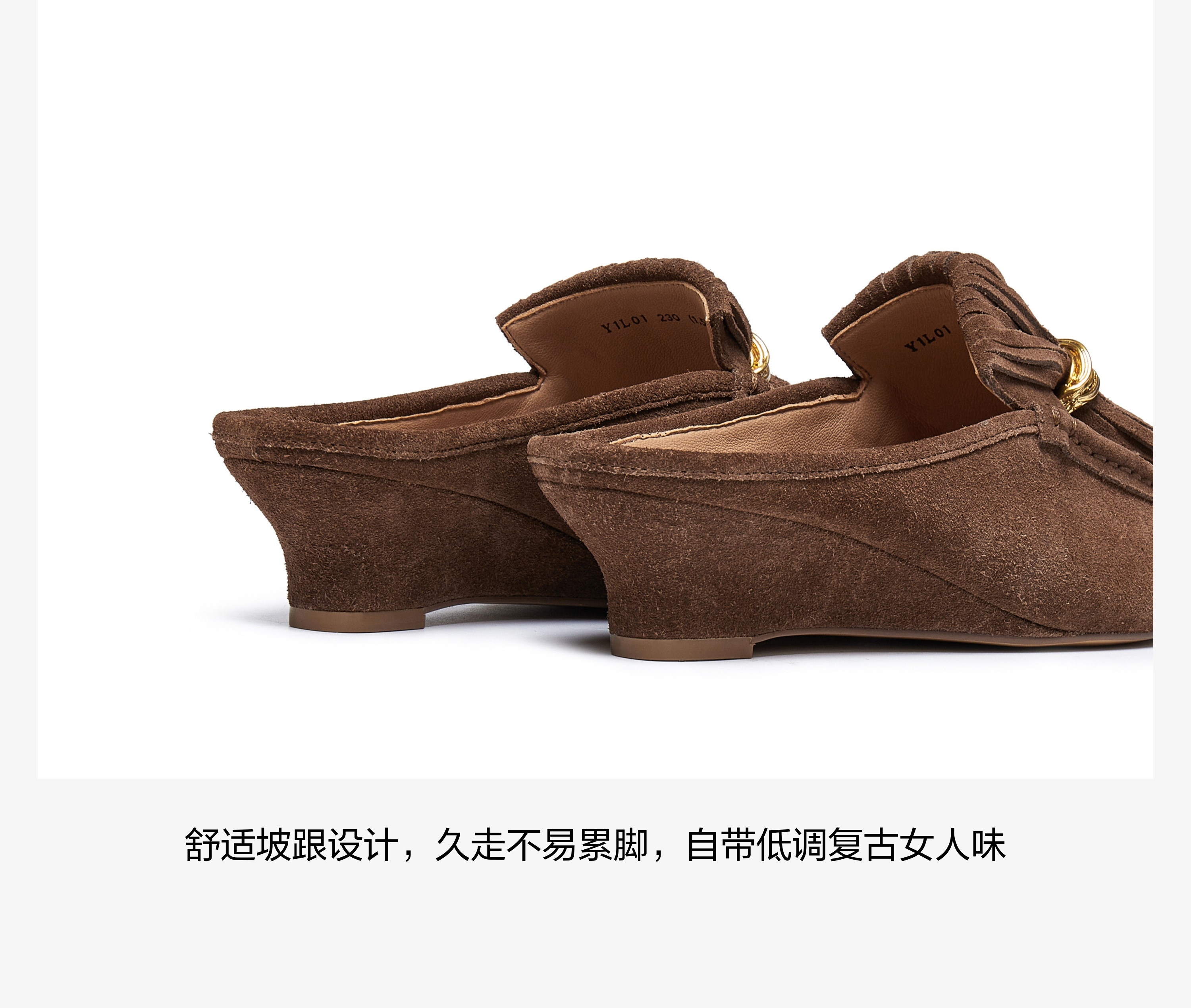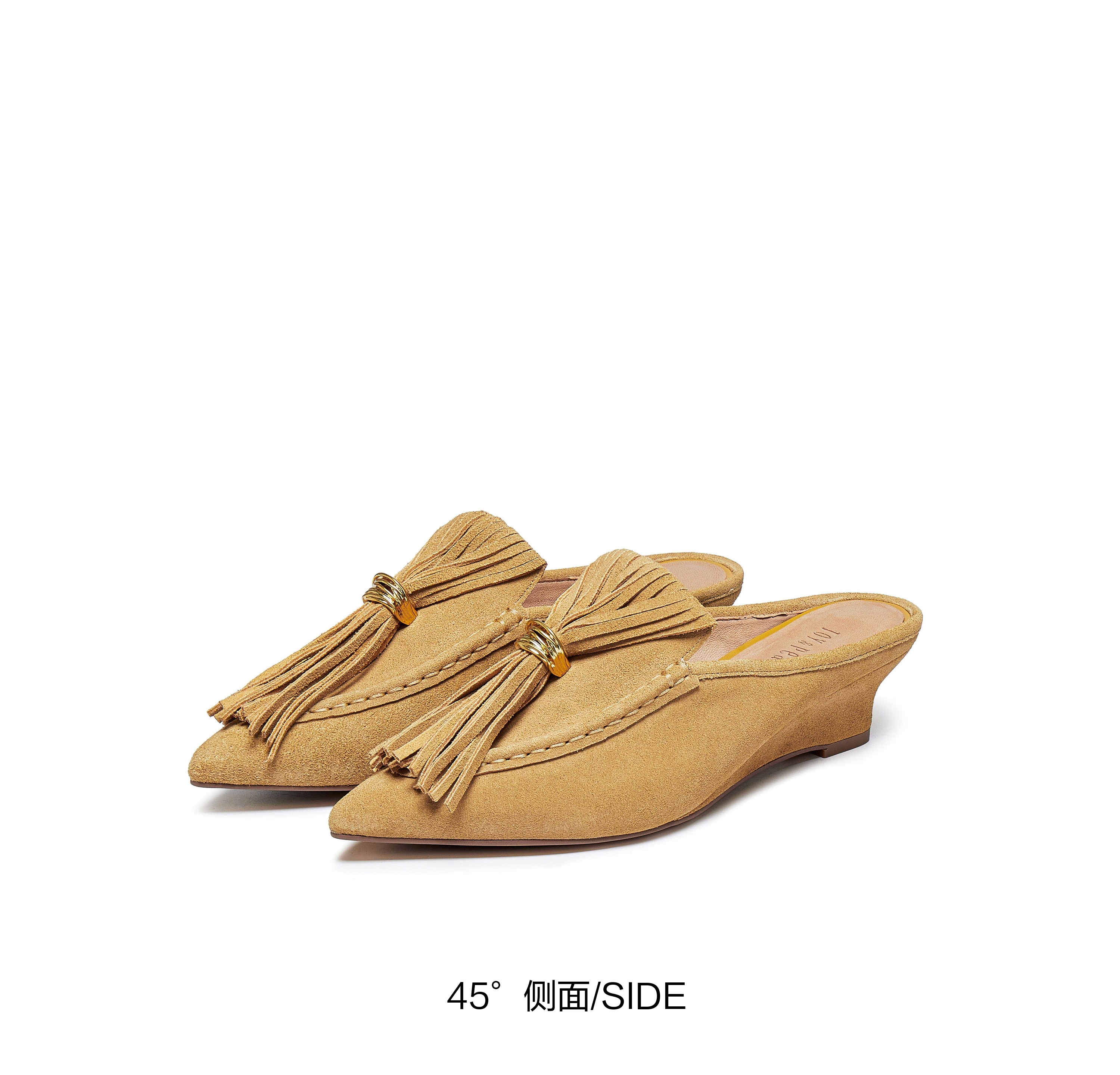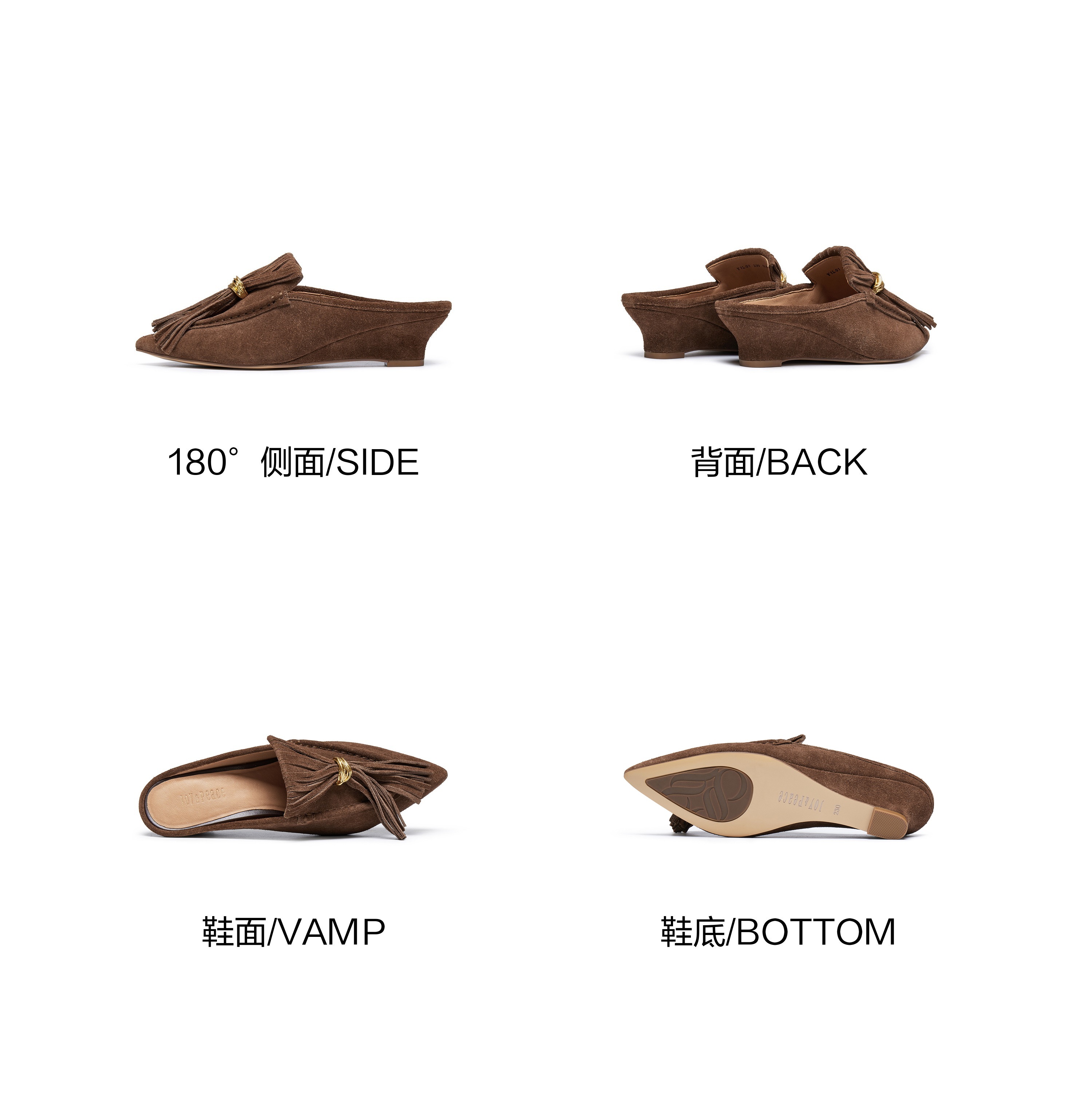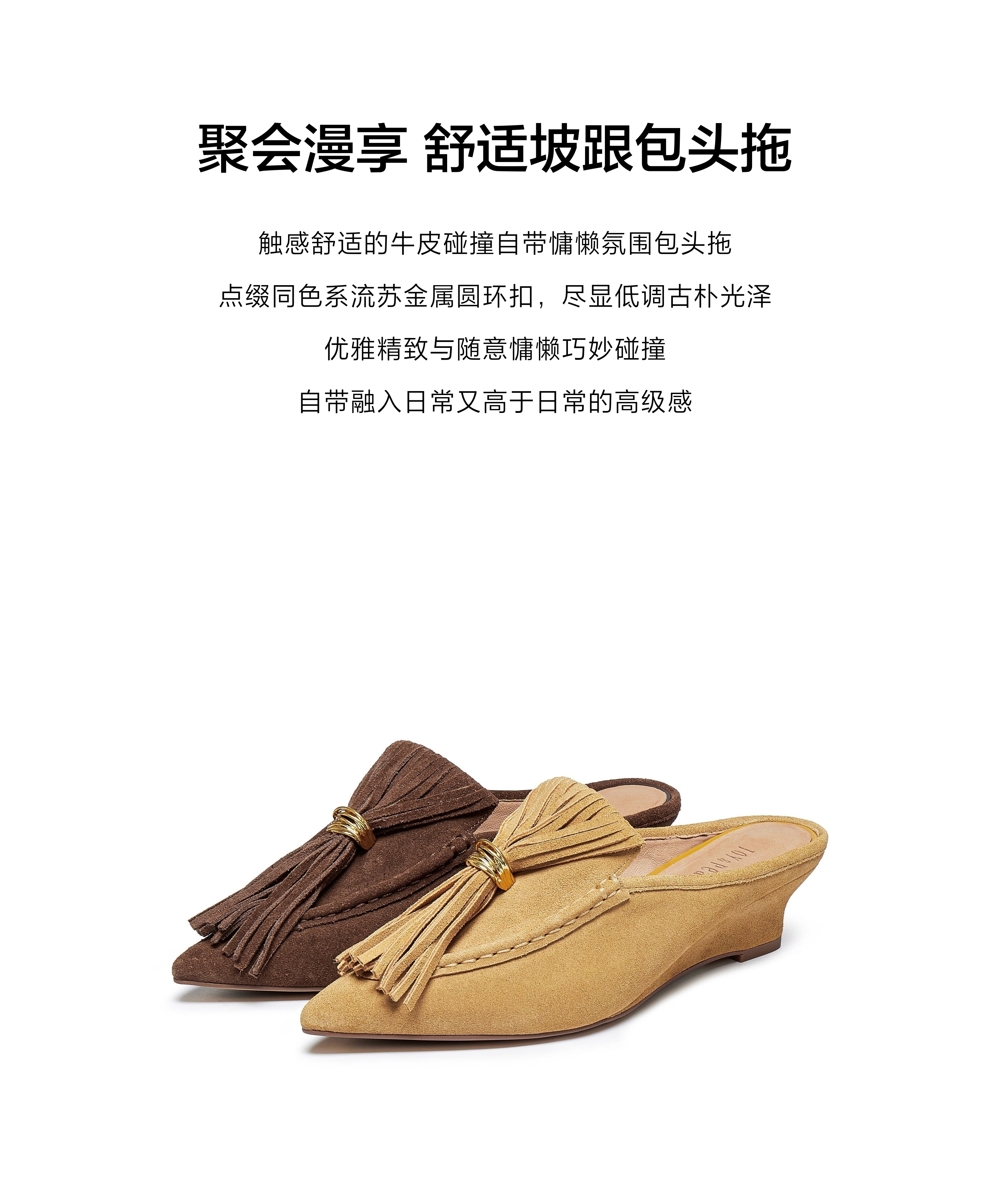 | 鞋头款式:尖头 | 鞋底材质:橡胶底 | 鞋面图案:纯色 | 鞋跟形状:坡跟 | 鞋面材质:牛剖层革 |