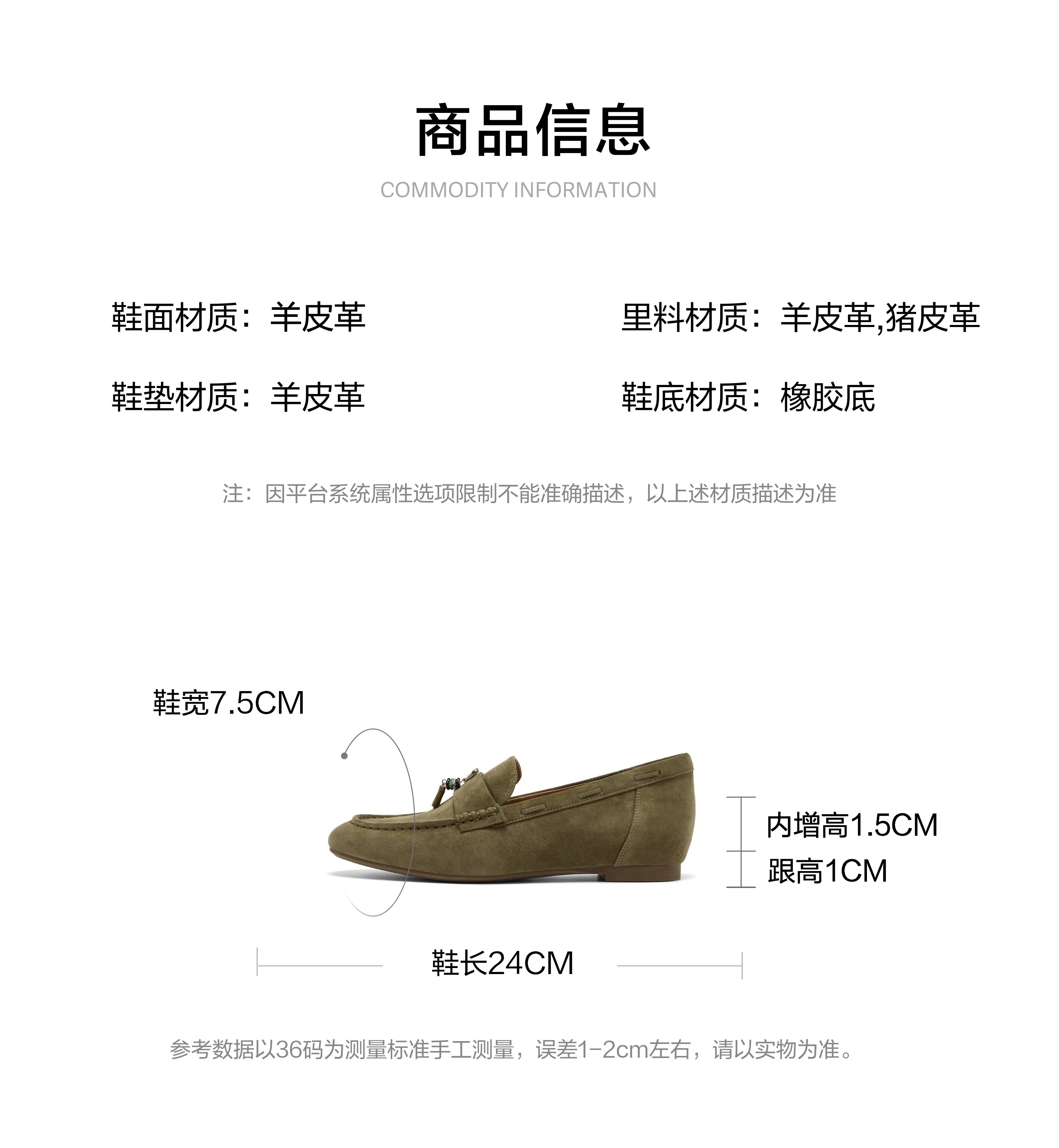 | 鞋垫材质:羊皮革 | 前掌高度:1CM | 皮质特征:羊皮革 | 鞋类流行款式:乐福鞋 |