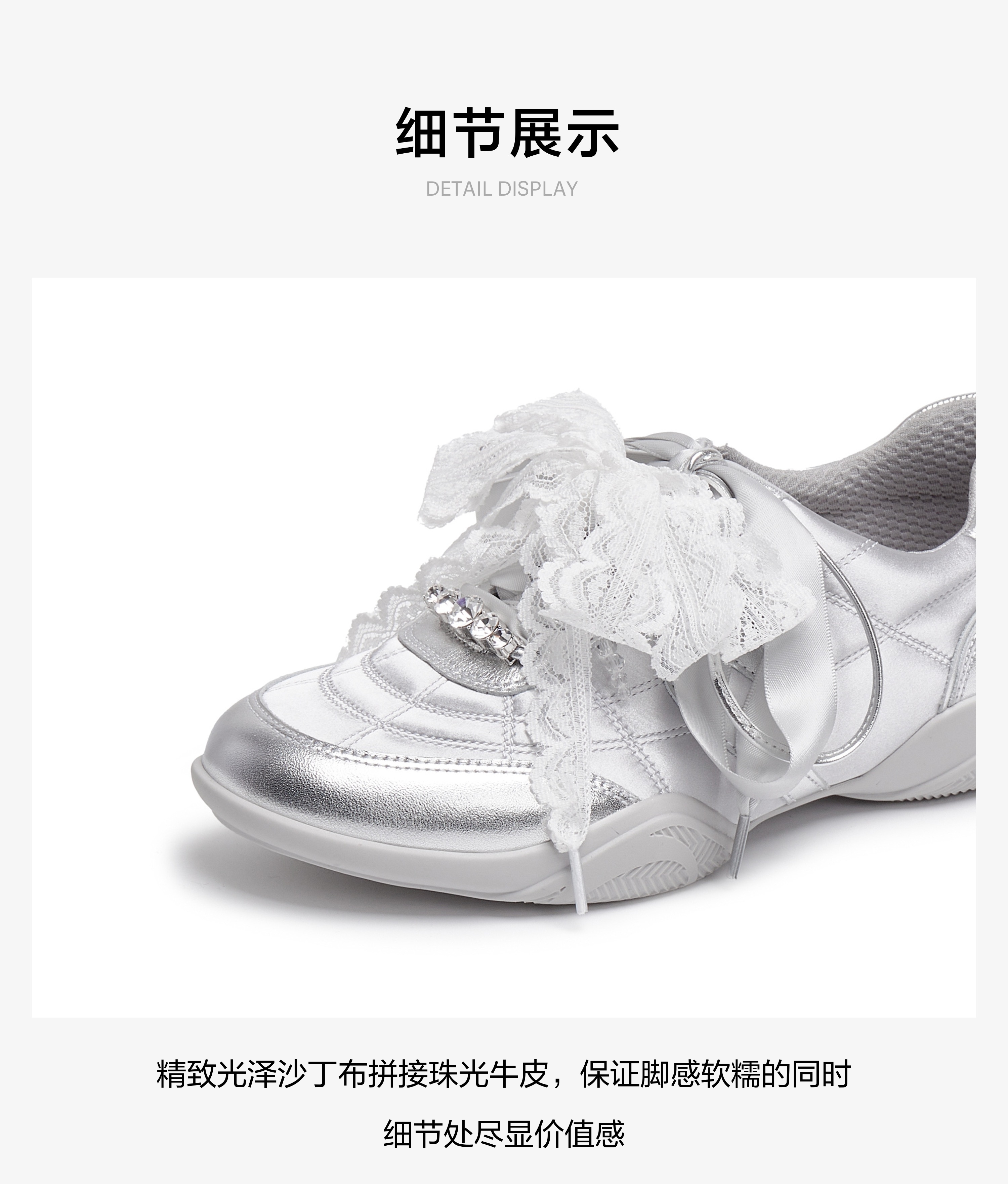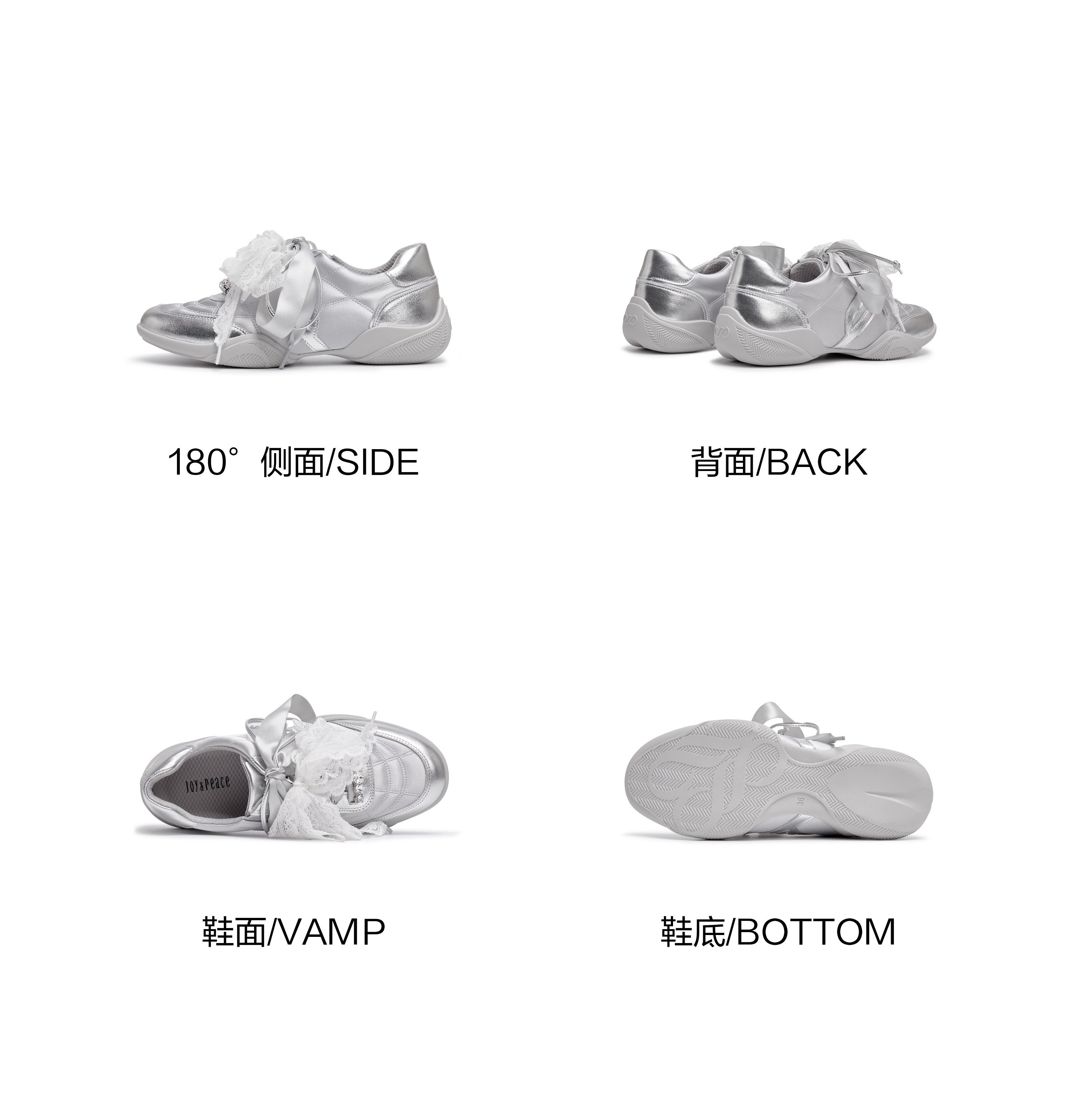 | 鞋面内里材质:织物 | 色系:银色 | 跟高数值:3.5CM | 配跟:无 | 性别:女子 |