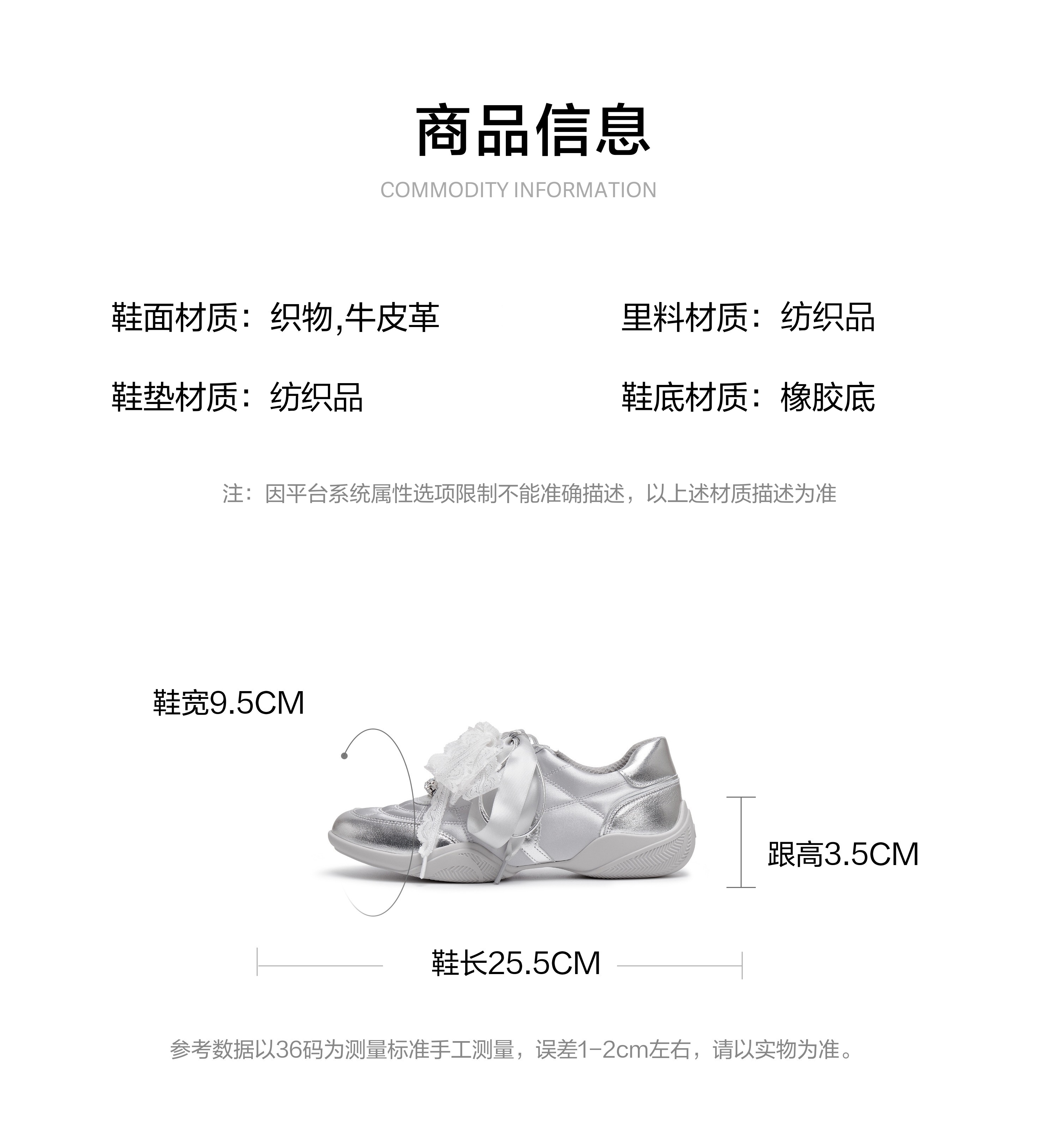 | 流行元素:蕾丝 | 参考鞋长(女):25.5CM | 参考鞋宽(女):9.5CM | 闭合方式:系带 | 风格:休闲 |