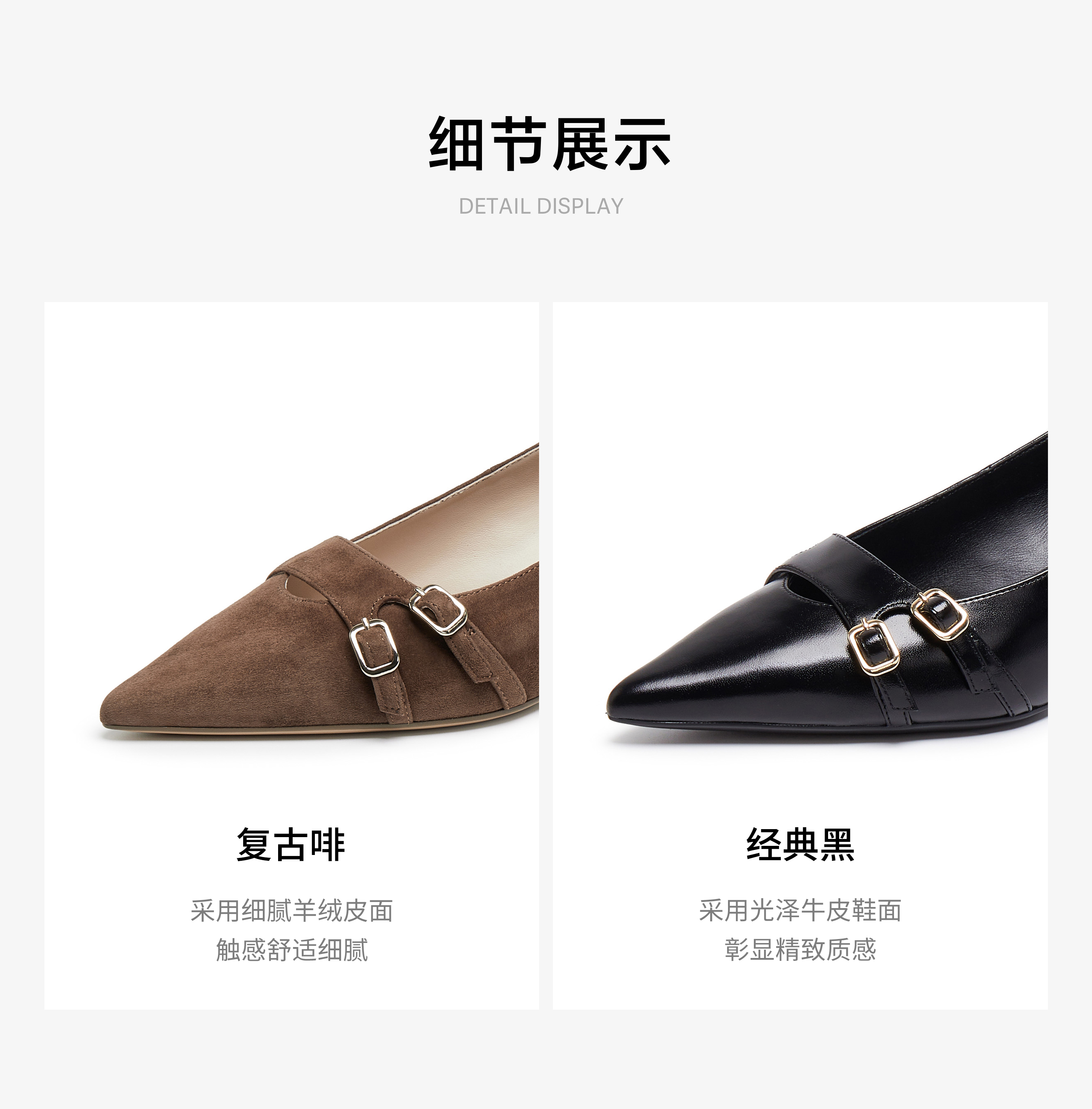 | 鞋头款式:尖头 | 鞋底材质:TPU | 鞋面图案:纯色 | 鞋跟形状:细跟 | 鞋面材质:牛皮革 |
