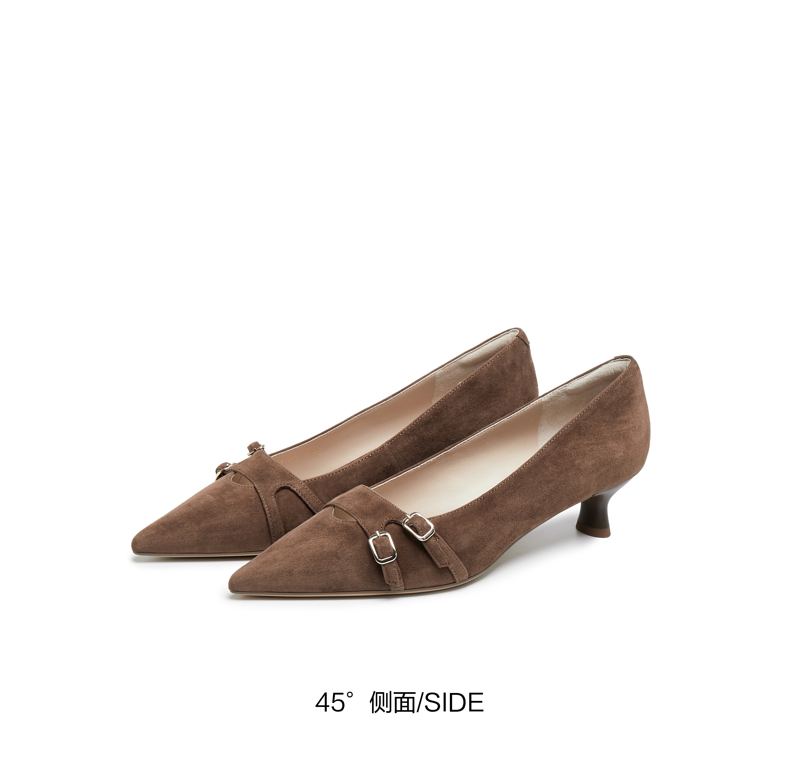 | 鞋面内里材质:猪皮羊皮革 | 色系:咖啡色 | 跟高数值:4CM | 配跟:无 | 性别:女子 |