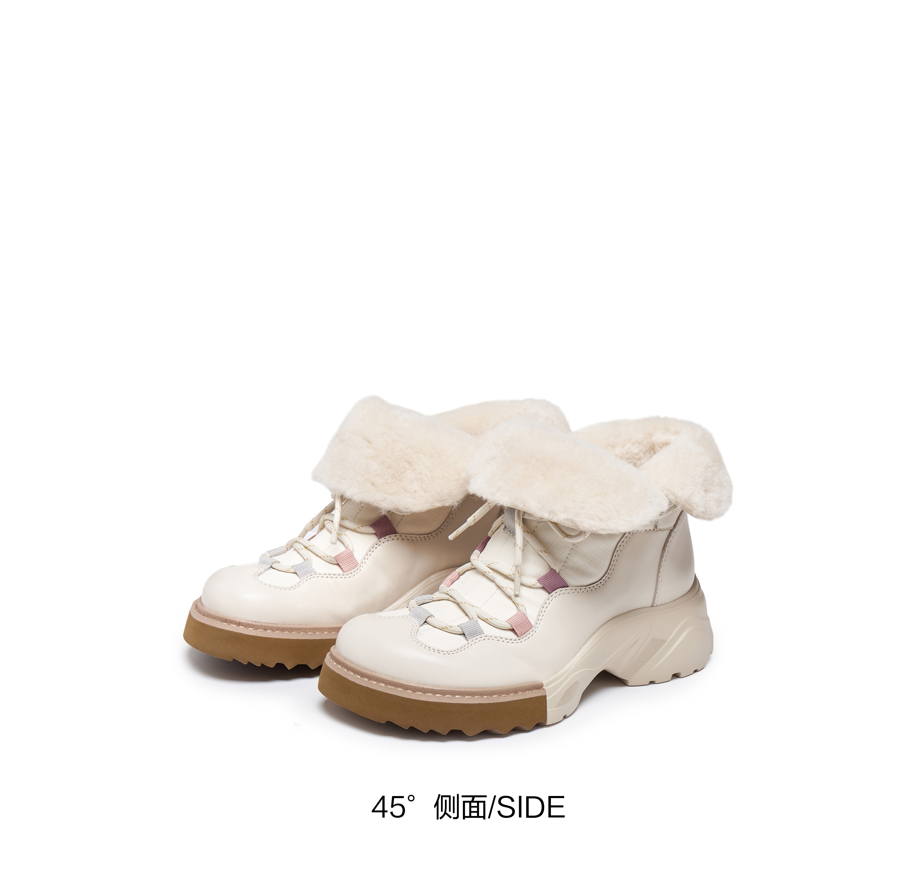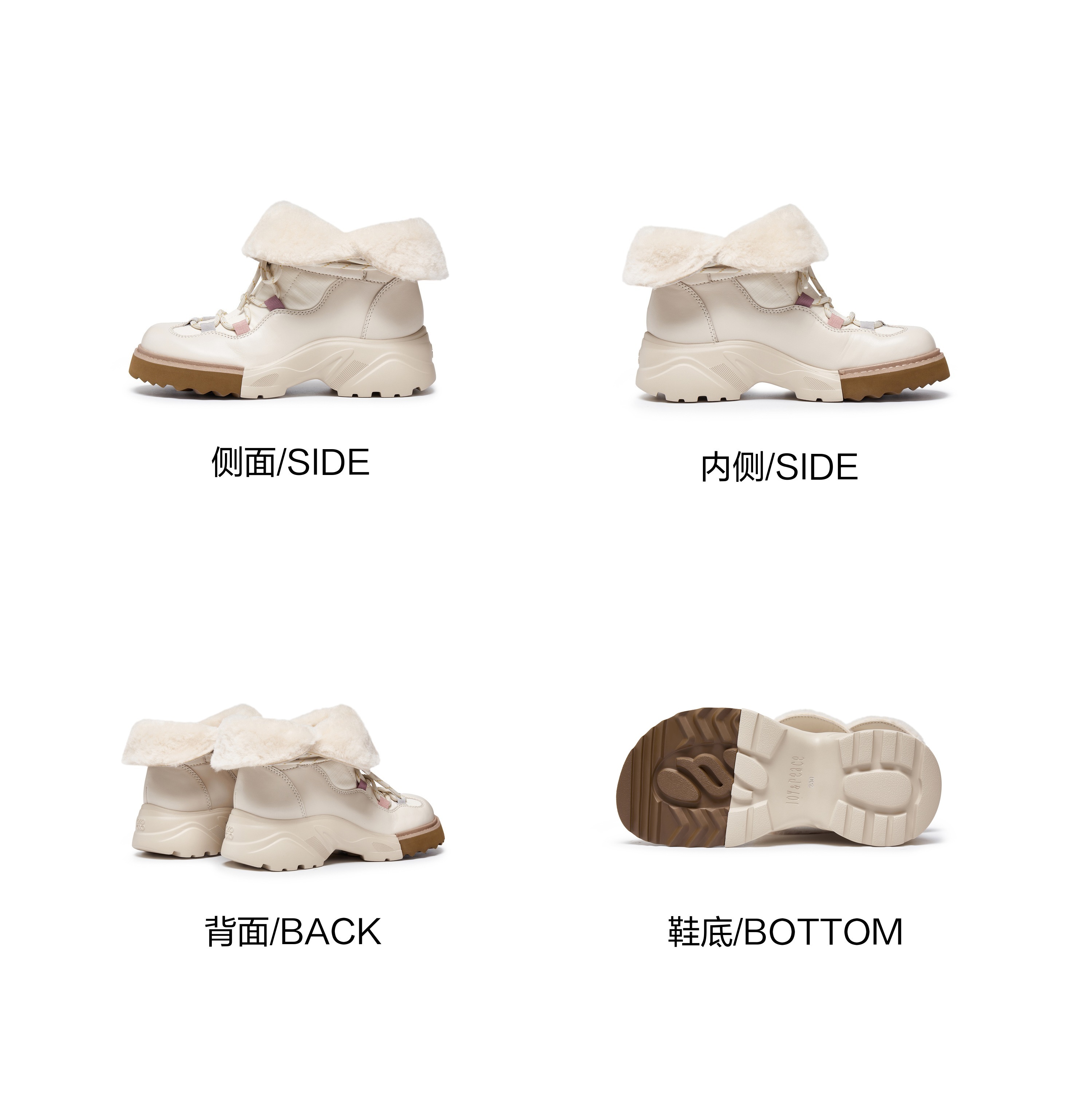 | 风格:时尚潮流 | 鞋面内里材质:织物羊毛皮 | 色系:米色 | 跟高数值:5CM | 性别:女子 |