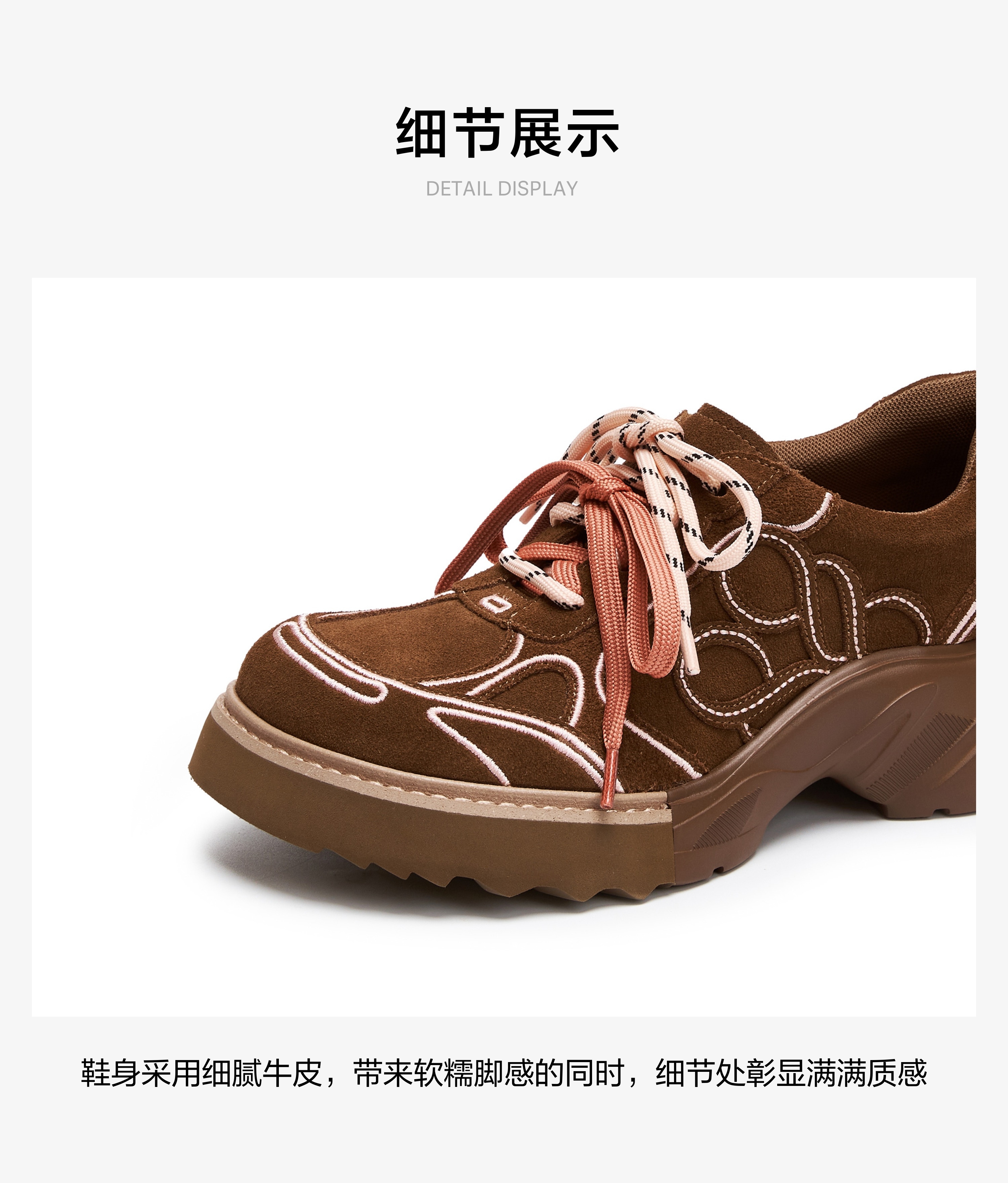 | 鞋面内里材质:织物 | 色系:棕色 | 跟高数值:5CM | 适用人群:女子 | 配跟:无 |