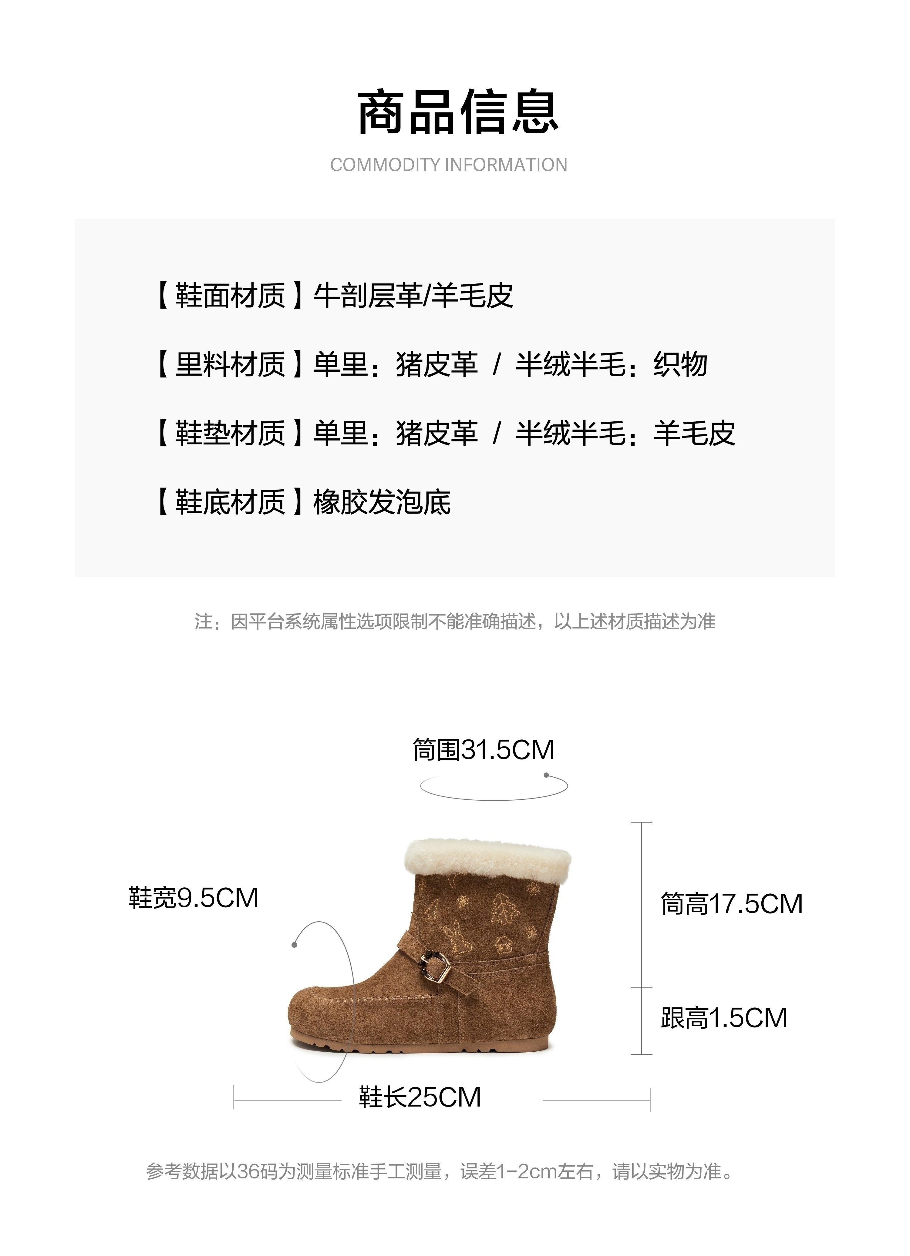 | 配跟:无 | 靴筒口围:31.5CM | 上市时间:2025年冬季 | 鞋类流行款式:雪地靴 | 鞋头款式:圆头 |