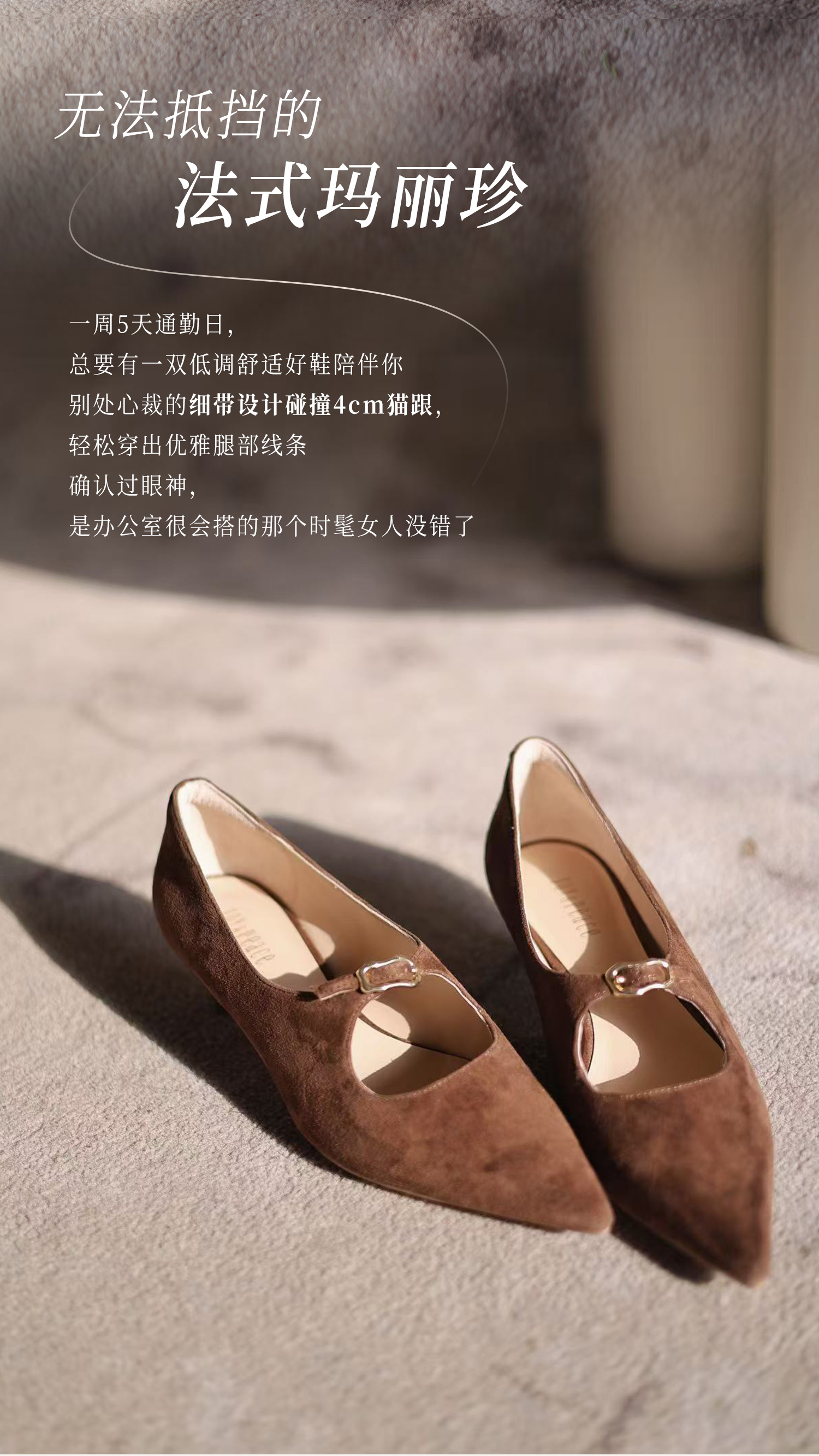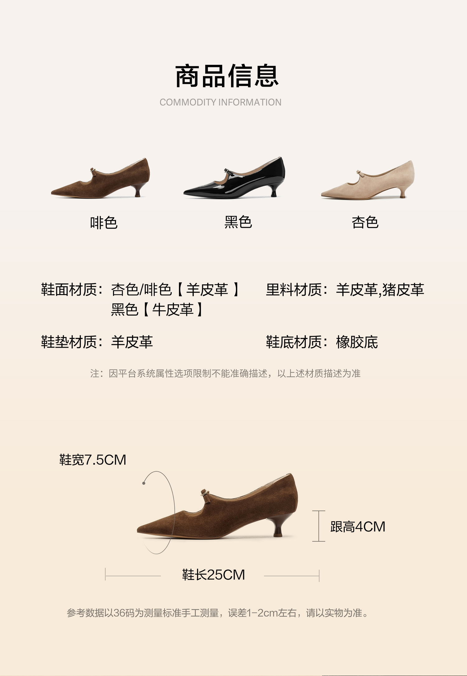 | 风格:优雅 | 跟高数值:4CM | 色系:杏色 | 配跟:无 | 性别:女子 |