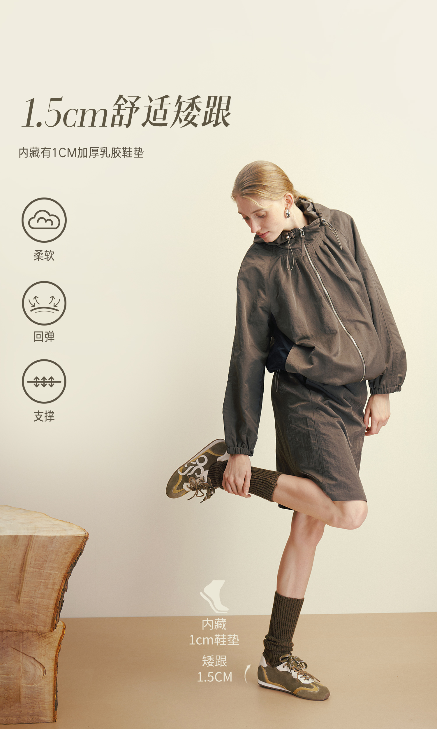 | 鞋面内里材质:猪皮 | 色系:咖啡色 | 跟高数值:1CM | 配跟:无 | 性别:女子 |