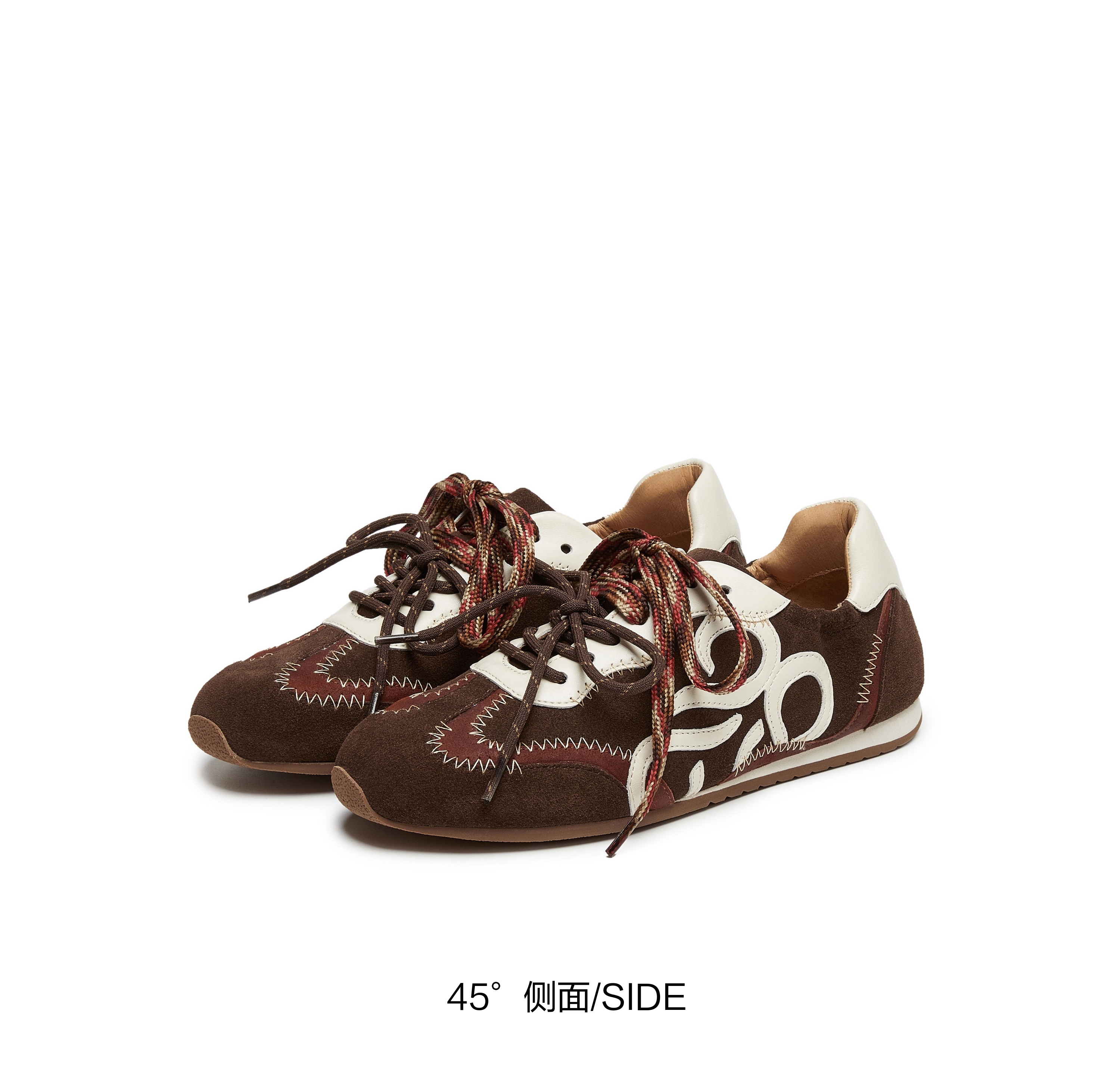 | 鞋头款式:圆头 | 鞋底材质:橡胶底 | 鞋面图案:拼色 | 鞋跟形状:平跟 | 鞋面材质:牛皮革牛剖层革 |