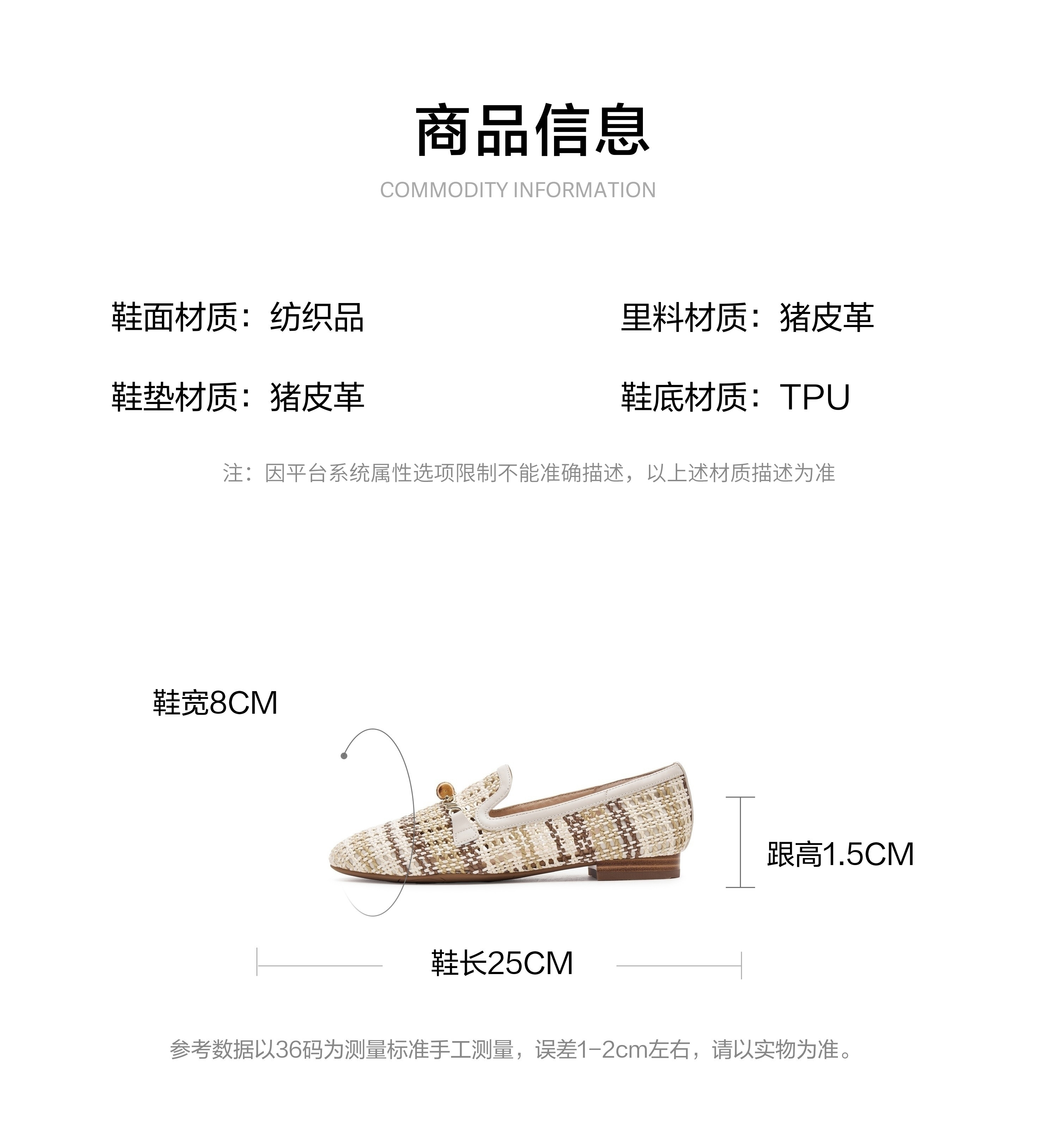 | 上市时间:2025年春季 | 鞋类流行款式:乐福鞋 | 鞋头款式:圆头 | 执行标准:皮鞋 QB/T1002-2015 | 跟高范围:低跟鞋(小于3CM) |