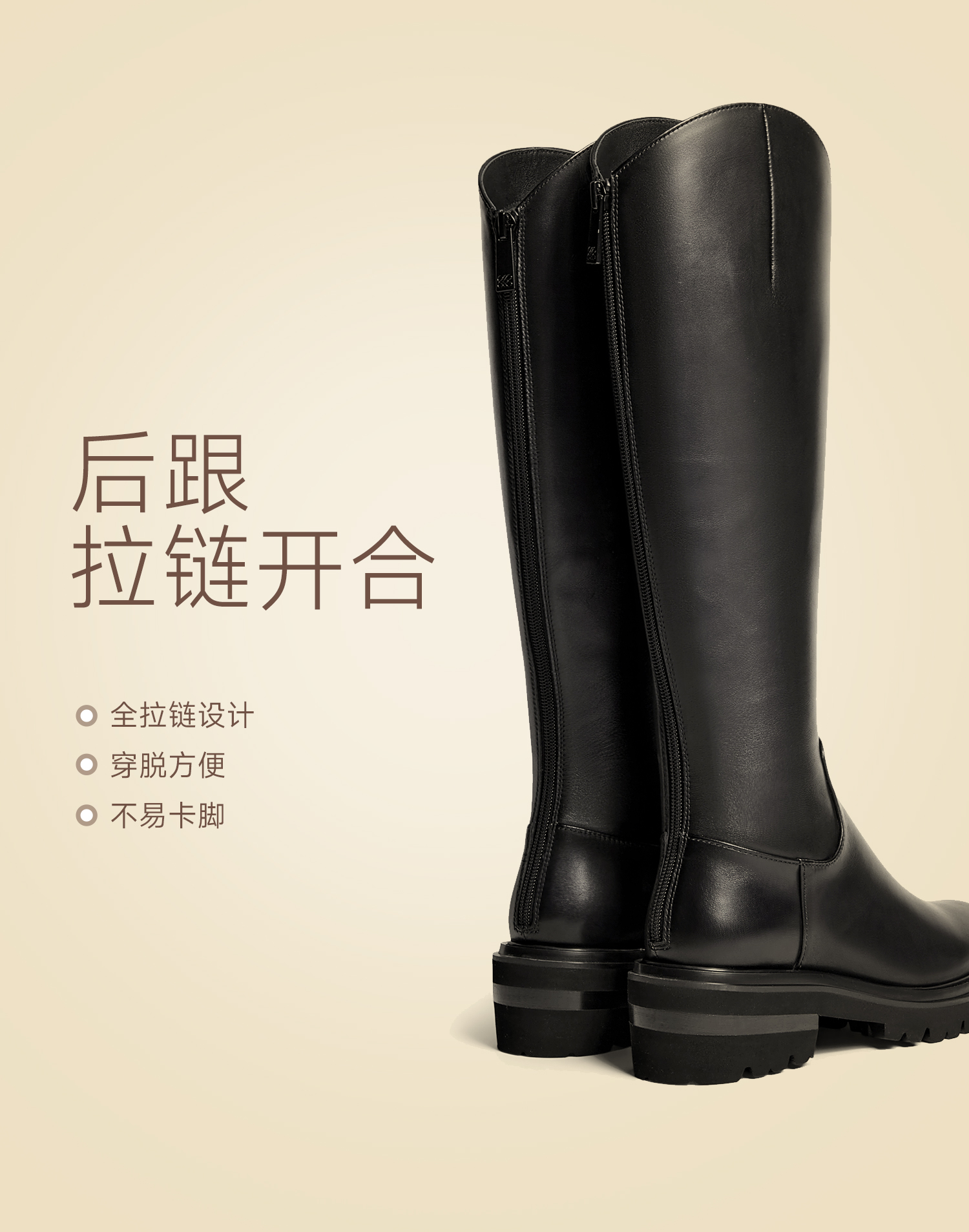| 鞋底材质:橡胶发泡底 | 靴筒内里材质:猪皮革 | 内增高:无 | 鞋面材质:牛皮革 | 闭合方式:后拉链 |