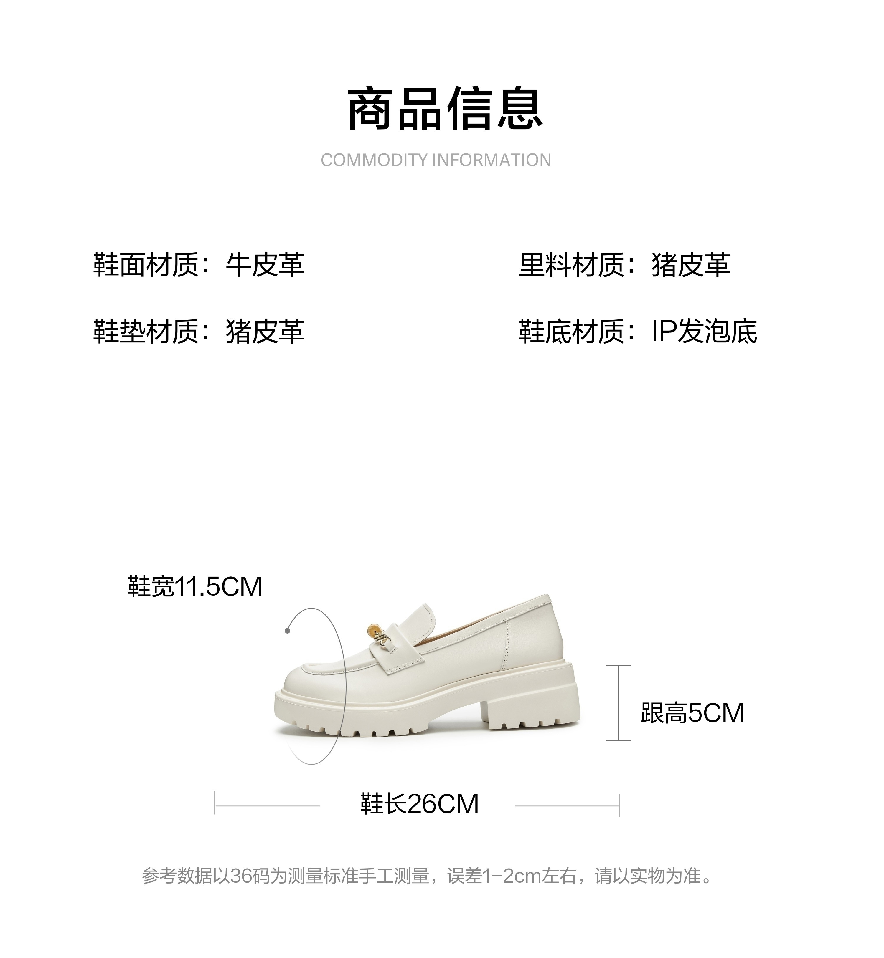 | 上市时间:2025年春季 | 鞋类流行款式:乐福鞋 | 鞋头款式:圆头 | 执行标准:舒适上班鞋Q/LR001-2023 | 跟高范围:中跟鞋(3-5CM) |