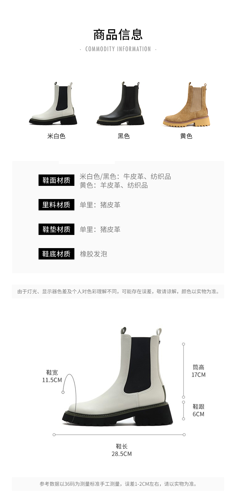 | 皮质特征:牛皮革 | 防水台高度:3CM | 鞋类流行款式:切尔西靴 |