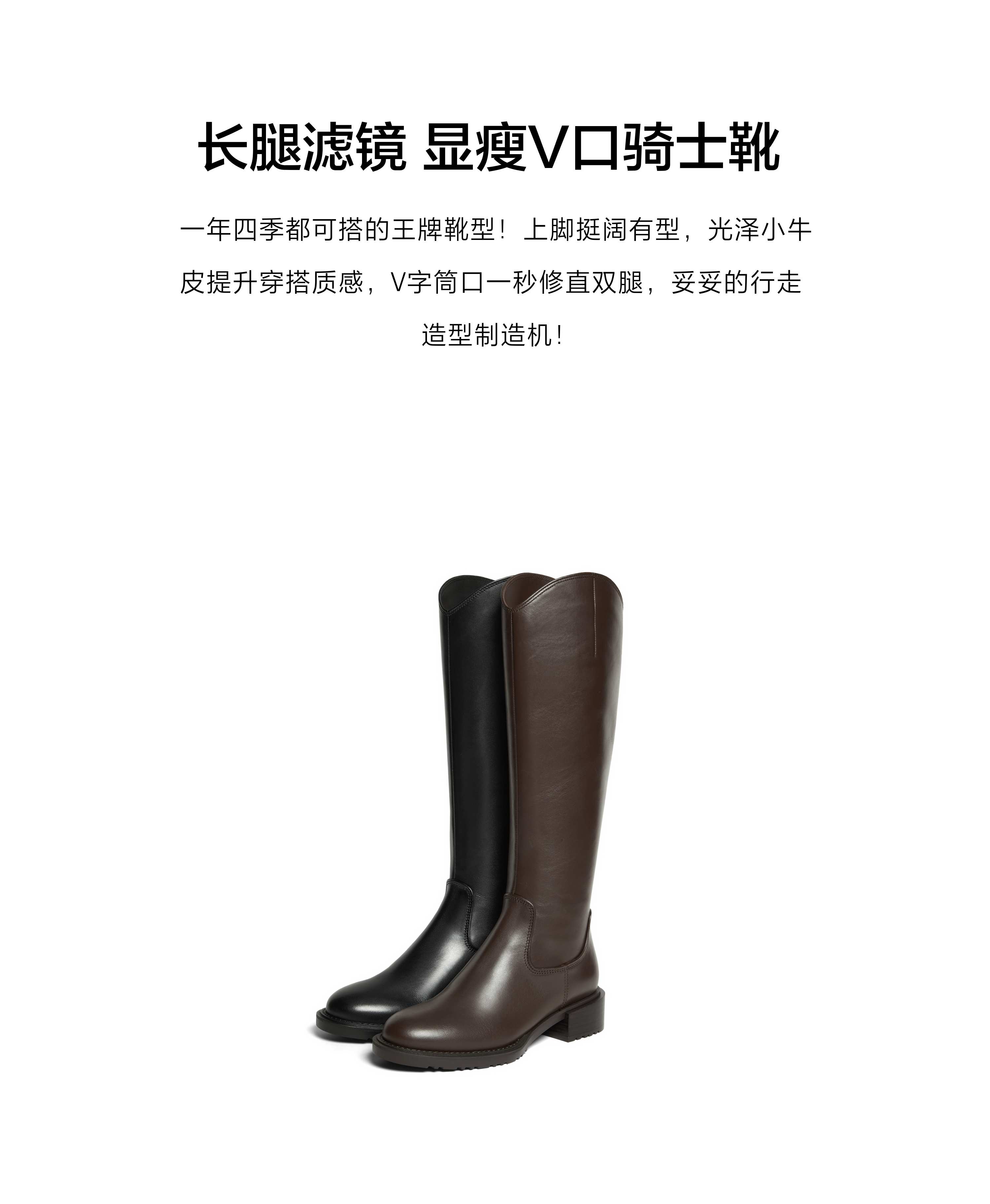 | 性别:女子 | 靴筒筒面材质:牛皮革 | 里料材质:猪皮革 | 上市时间:2025年冬季 | 制鞋工艺:车线胶粘 |