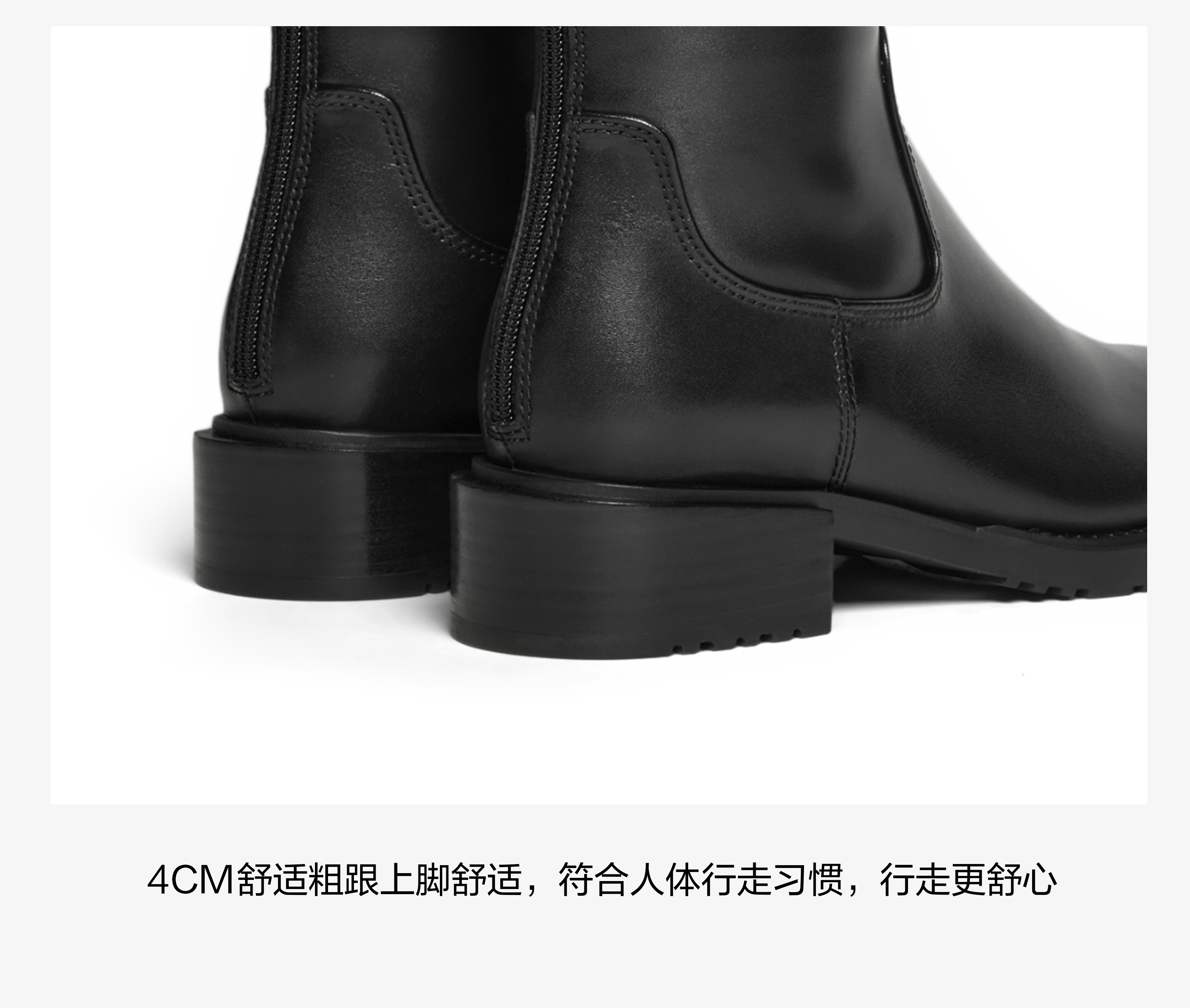 | 鞋头款式:圆头 | 鞋底材质:橡胶底 | 靴筒内里材质:猪皮革 | 内增高:无 | 鞋跟形状:粗跟 |
