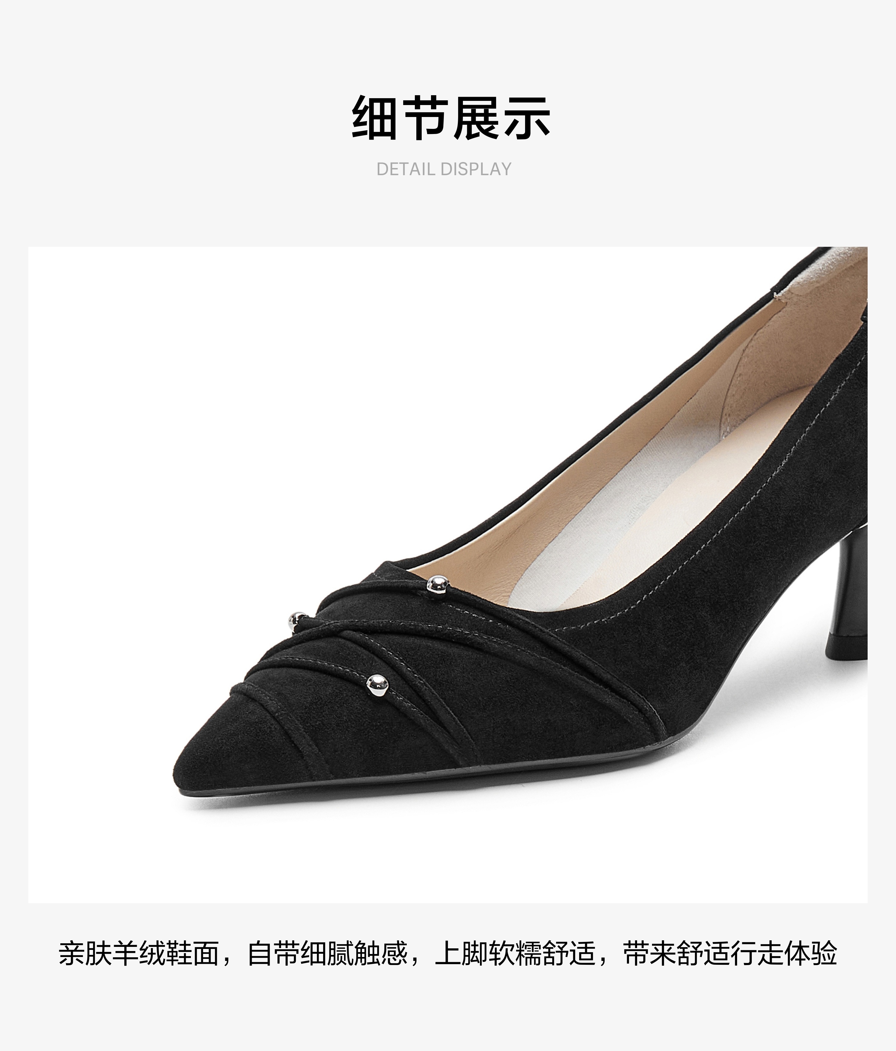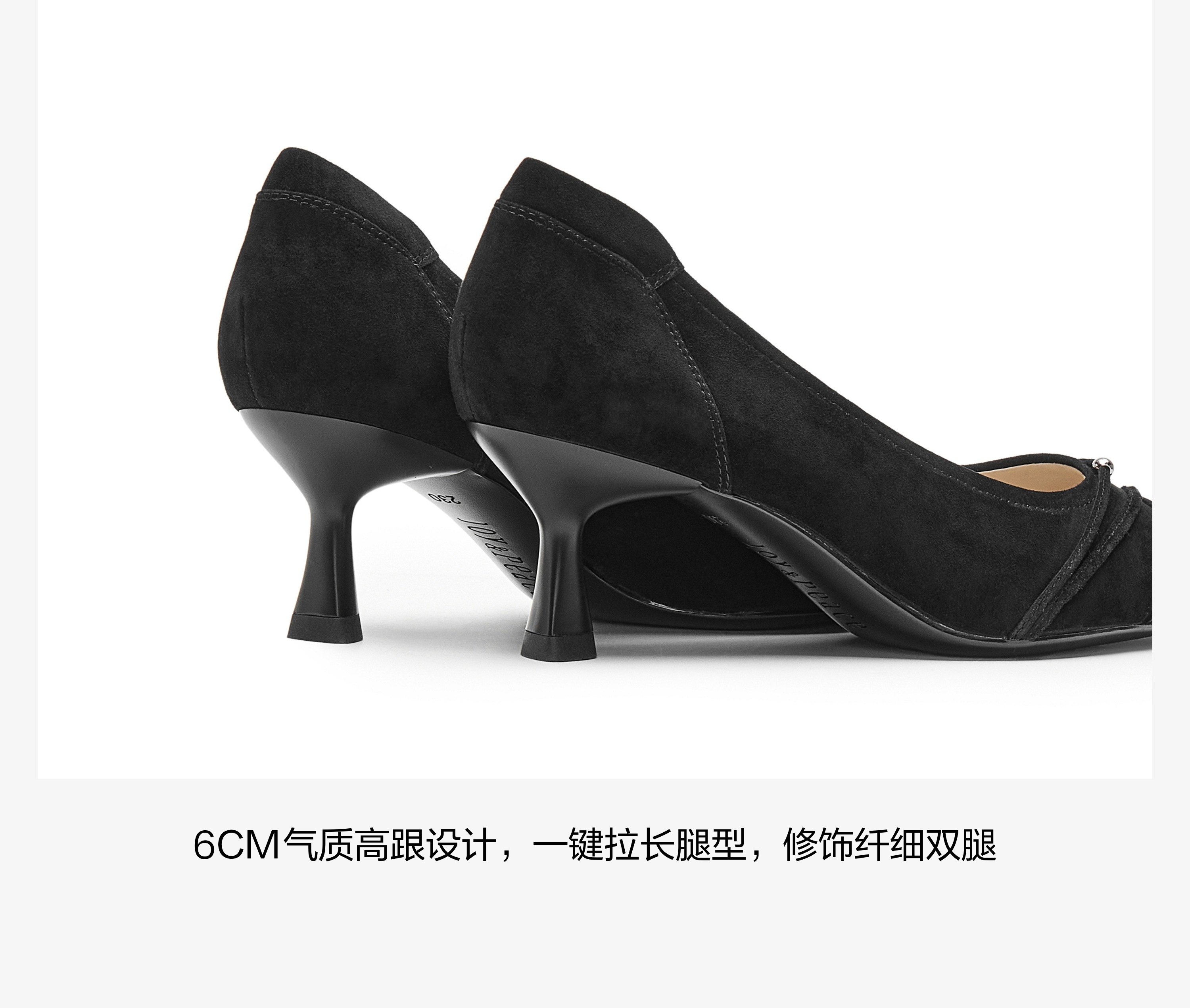 | 上市时间:2025年春季 | 鞋类流行款式:浅口鞋 | 鞋头款式:尖头 | 执行标准:皮鞋 QB/T1002-2015 | 跟高范围:高跟鞋(6-8CM) |