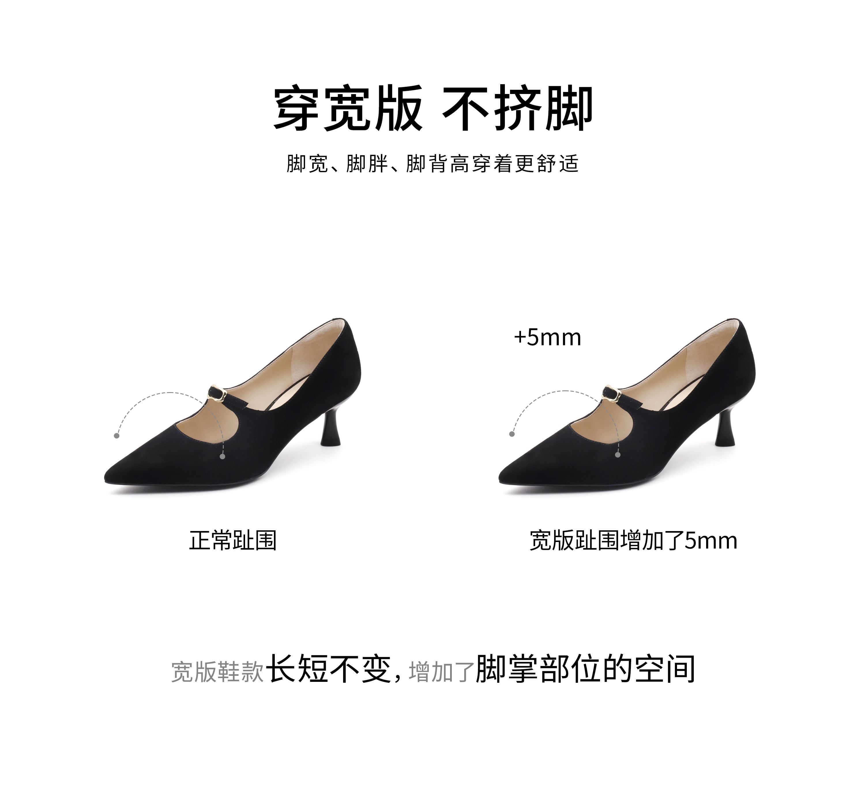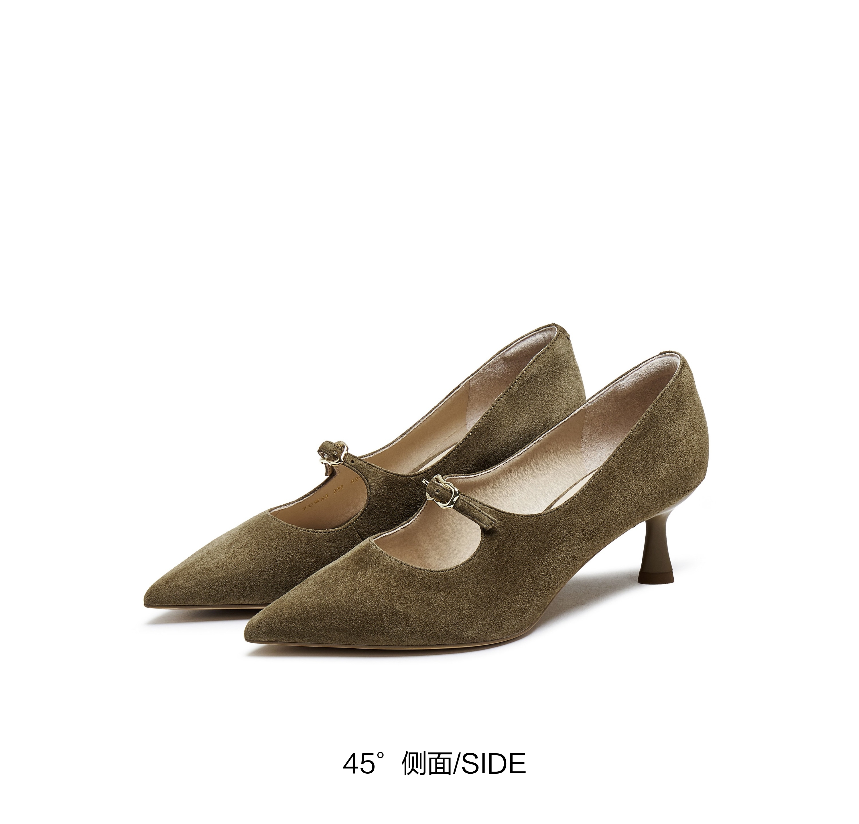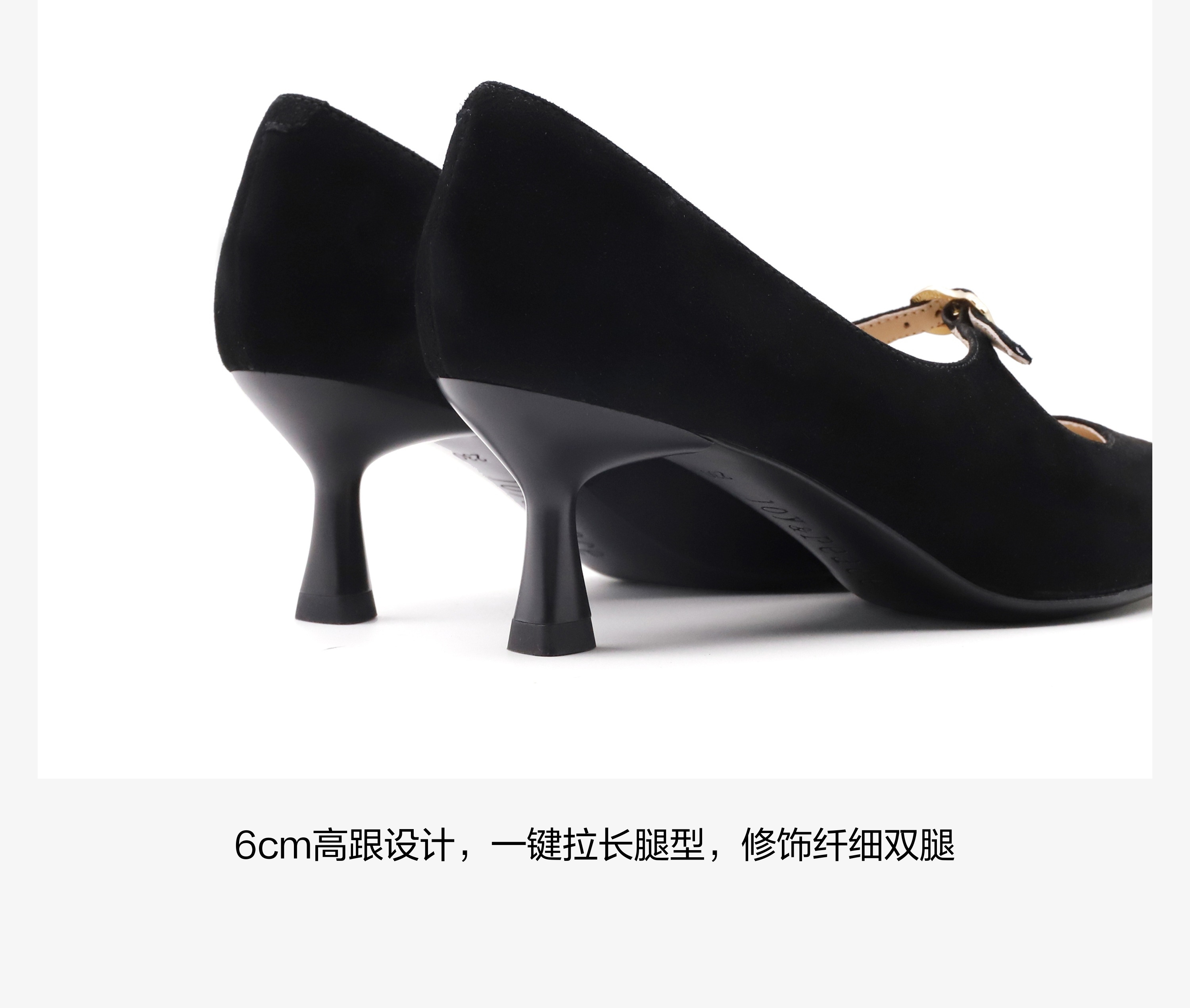 | 鞋类流行款式:玛丽珍鞋 | 鞋头款式:尖头 | 鞋面图案:纯色 | 鞋跟形状:细跟 | 参考鞋长(女):26.5CM |