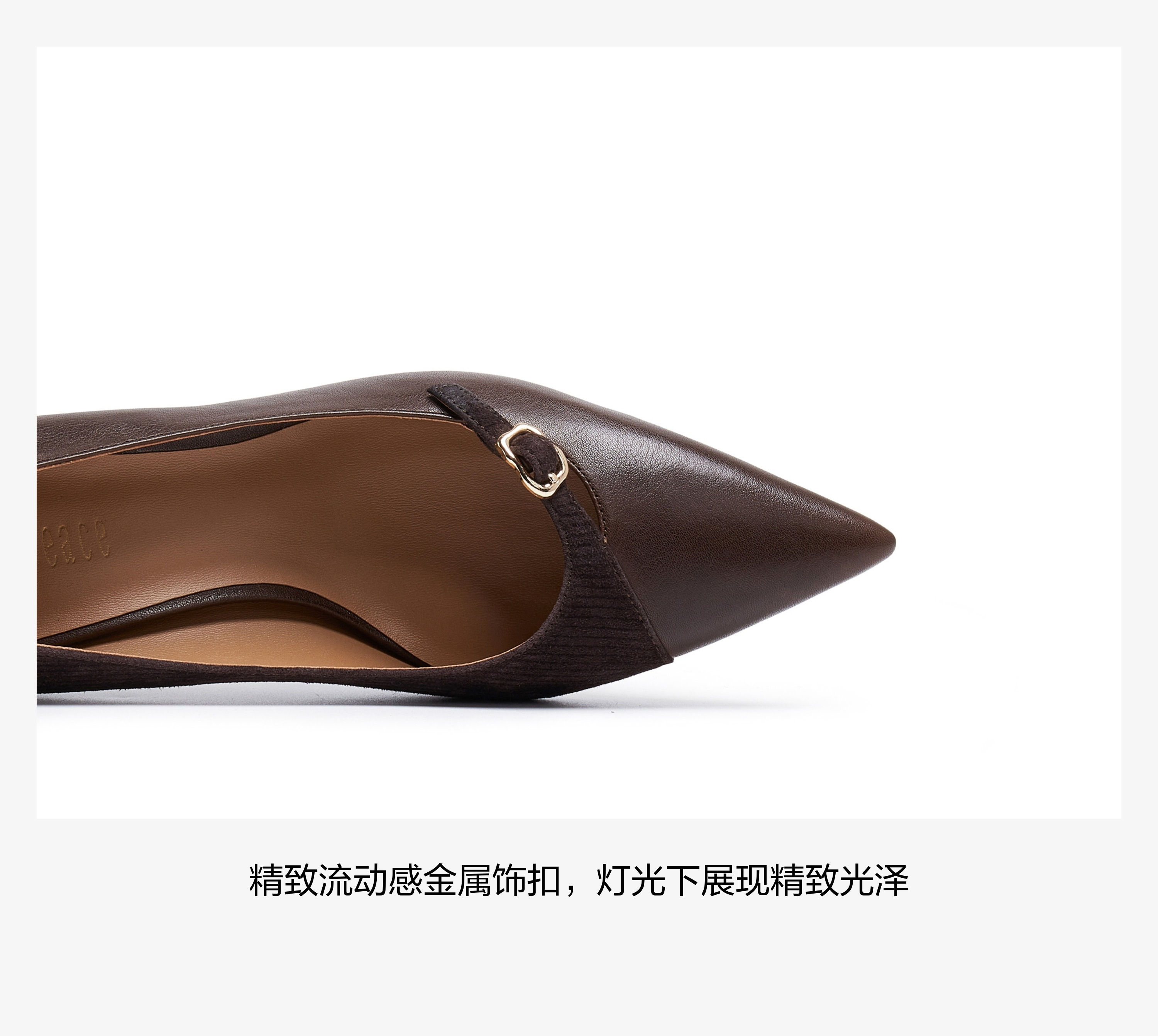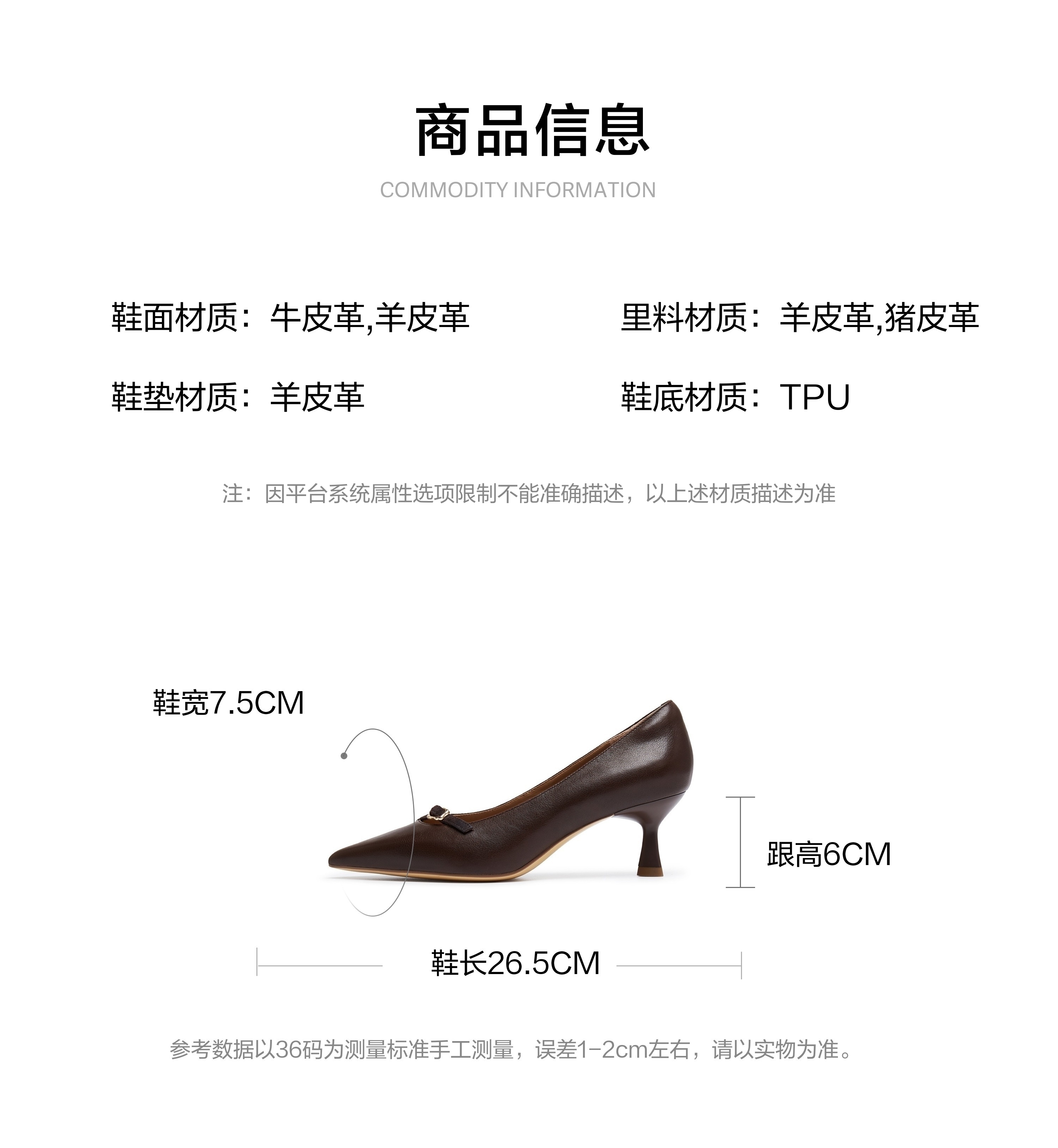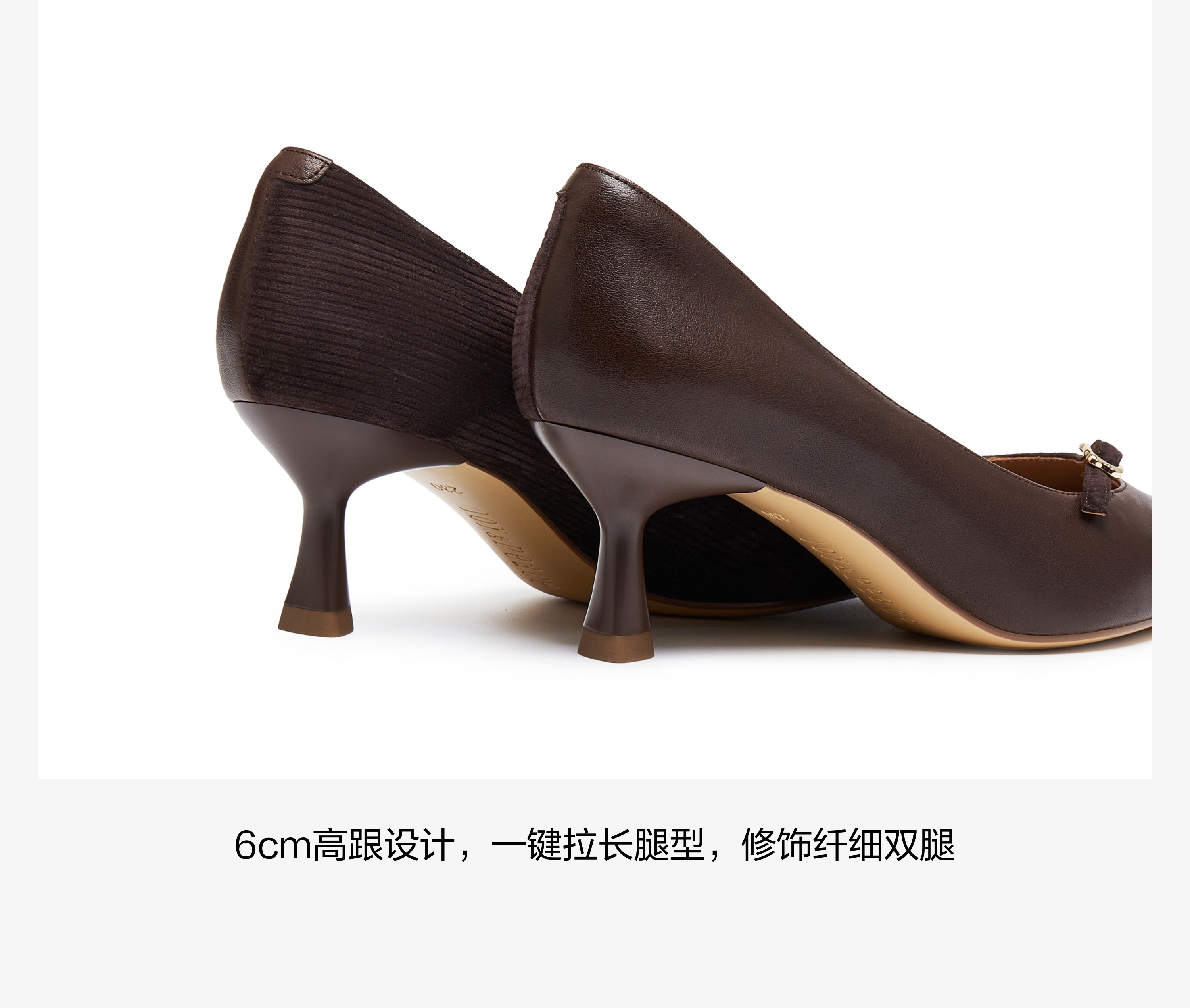 | 鞋面内里材质:猪皮羊皮革 | 色系:咖啡色 | 跟高数值:6CM | 配跟:无 | 性别:女子 |