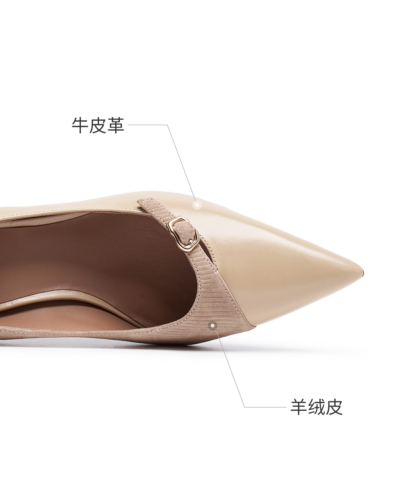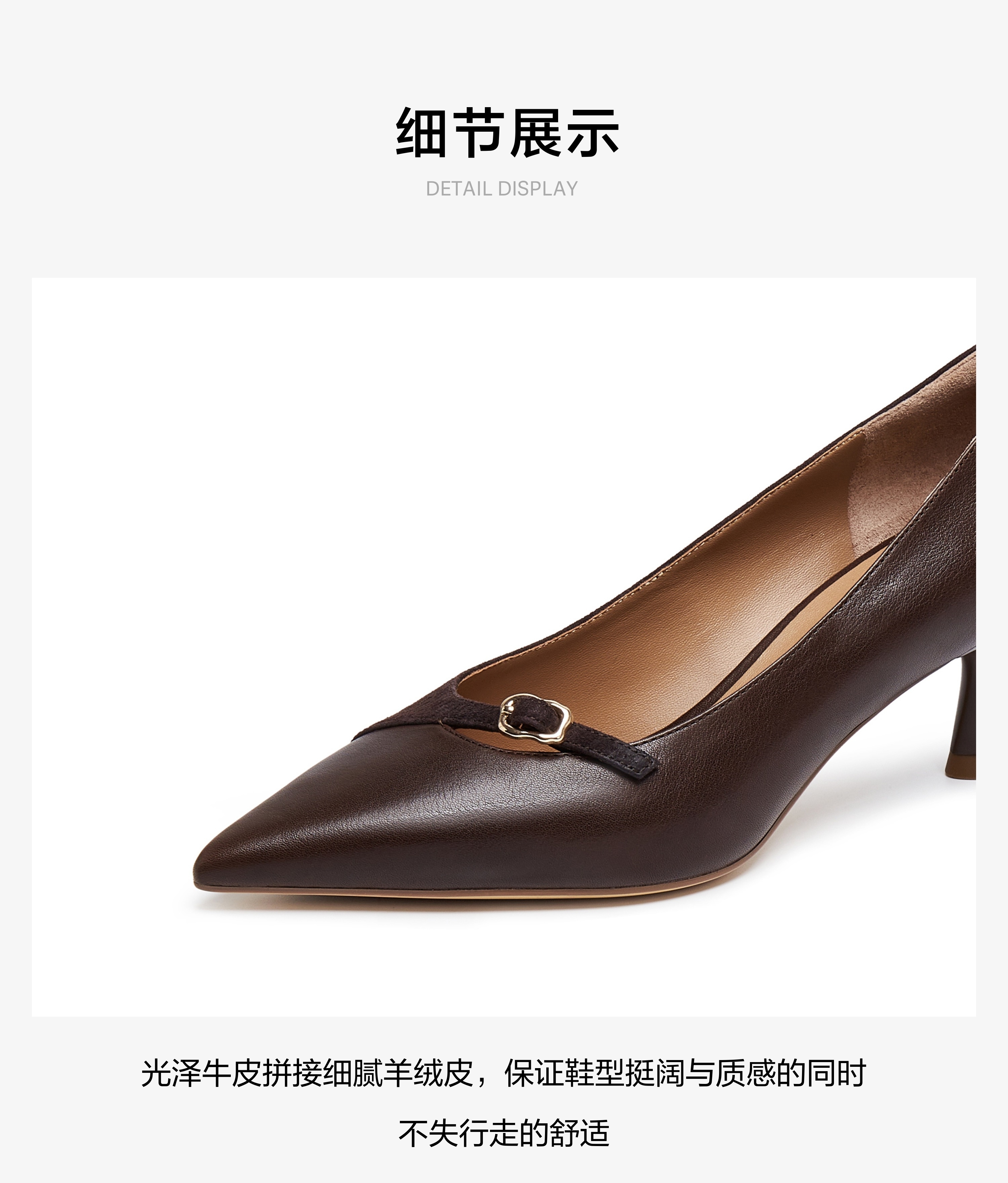 | 鞋头款式:尖头 | 鞋底材质:TPU | 鞋面图案:纯色 | 鞋跟形状:细跟 | 鞋面材质:羊皮革牛皮革 |