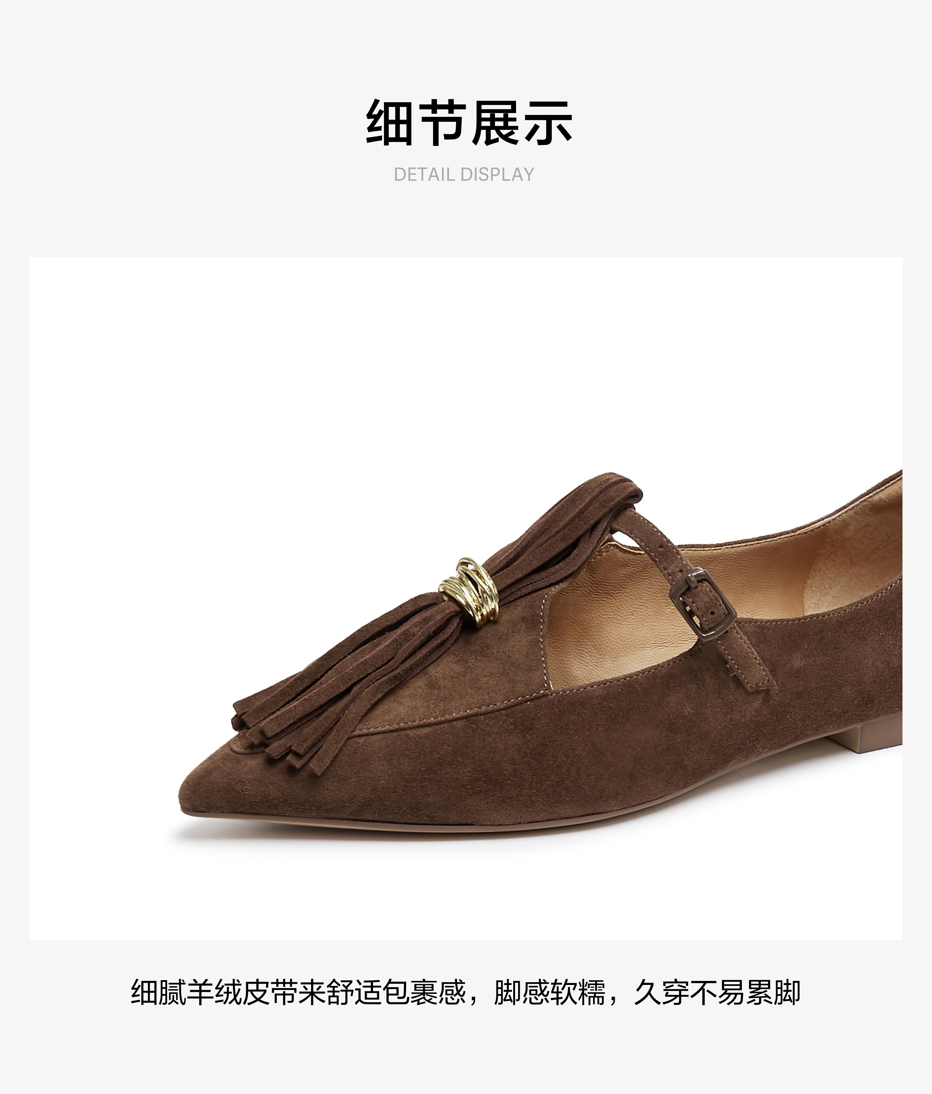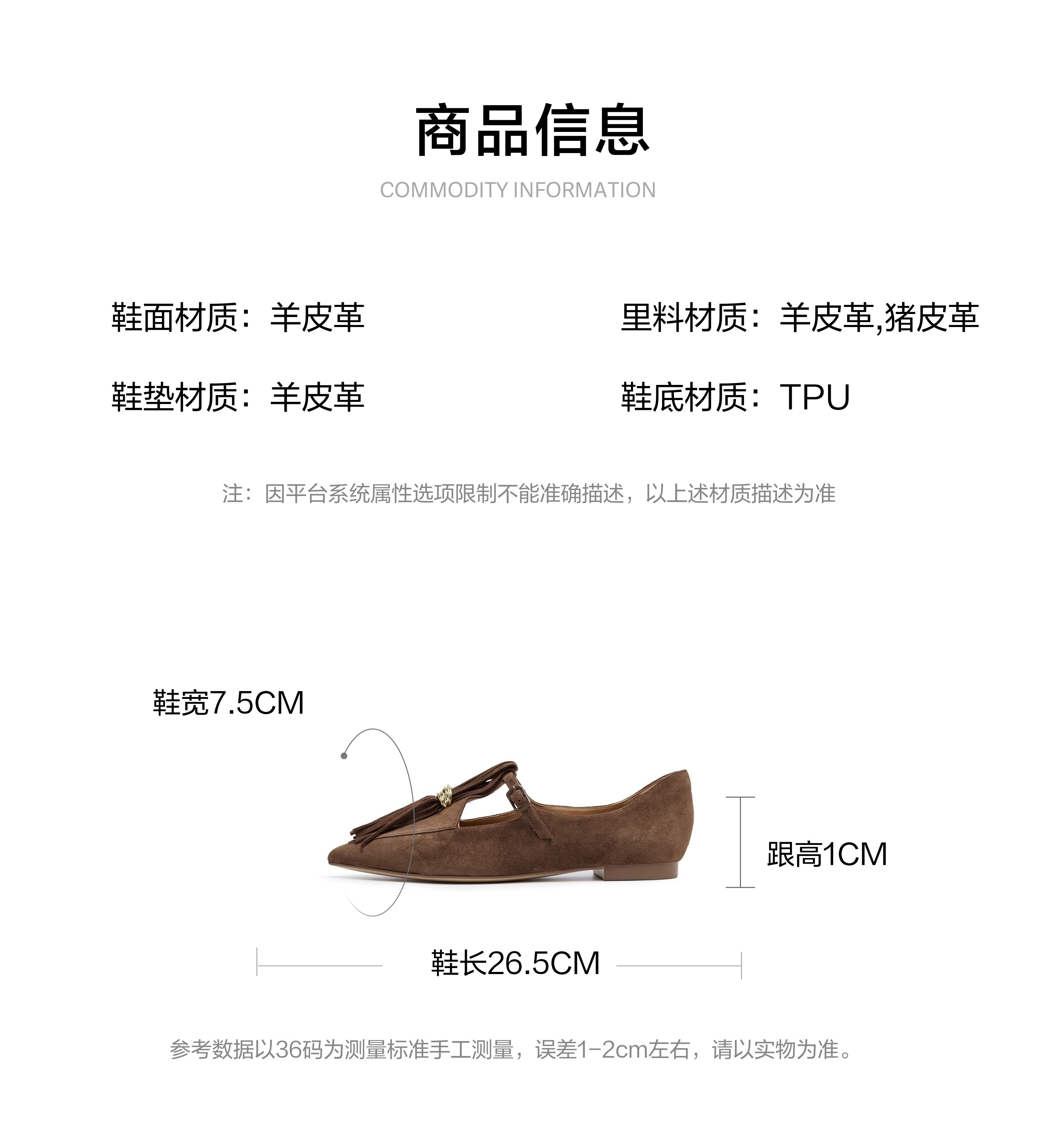 | 鞋面内里材质:猪皮羊皮革 | 色系:咖啡色 | 跟高数值:1CM | 配跟:无 | 性别:女子 |