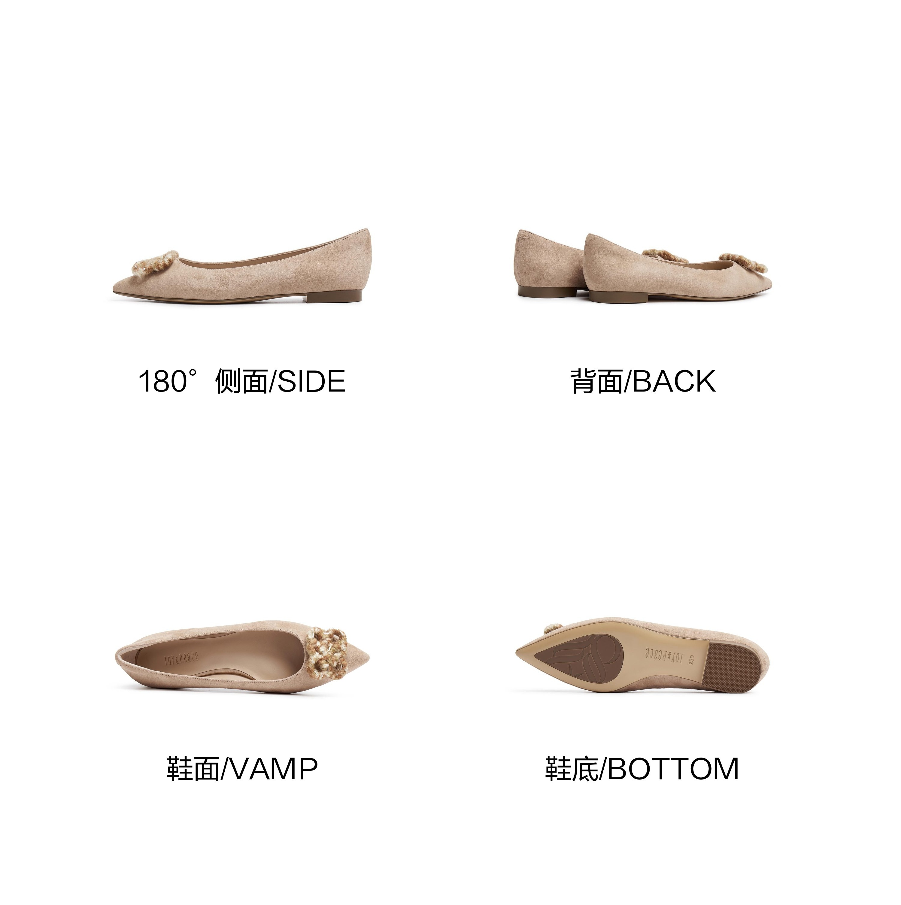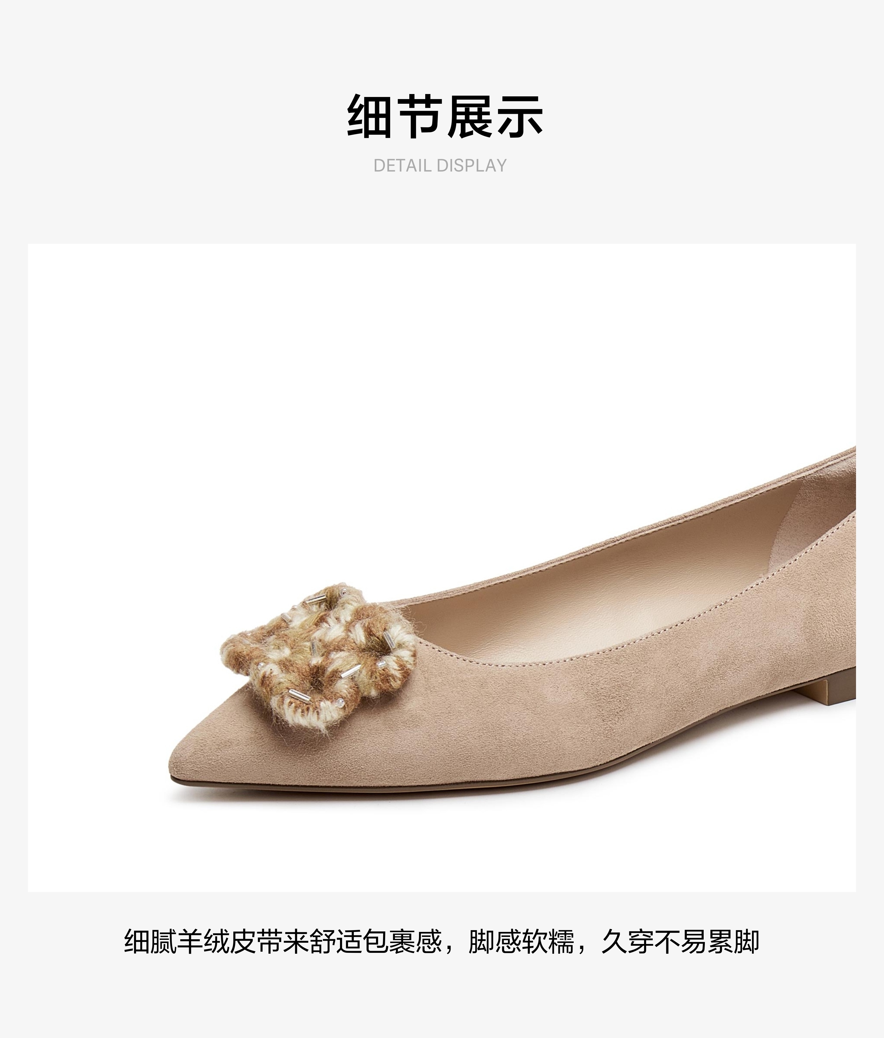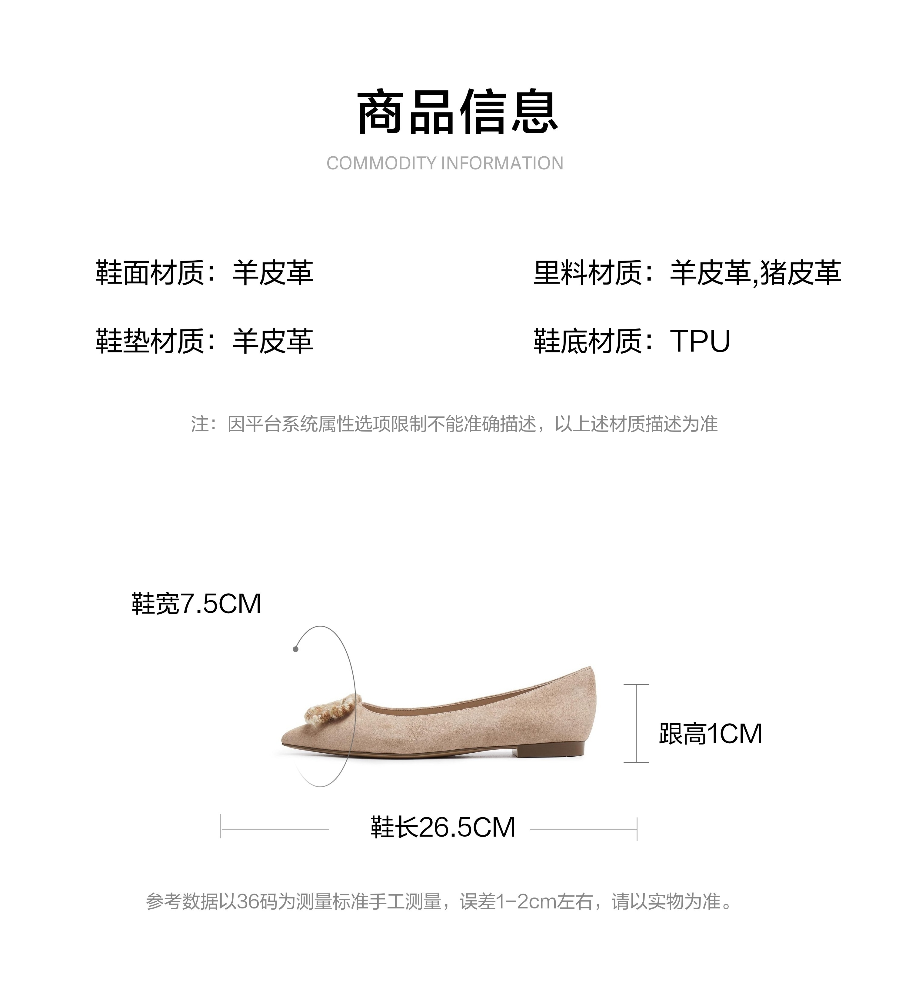 | 鞋面内里材质:猪皮羊皮革 | 色系:杏色 | 跟高数值:1CM | 配跟:无 | 性别:女子 |