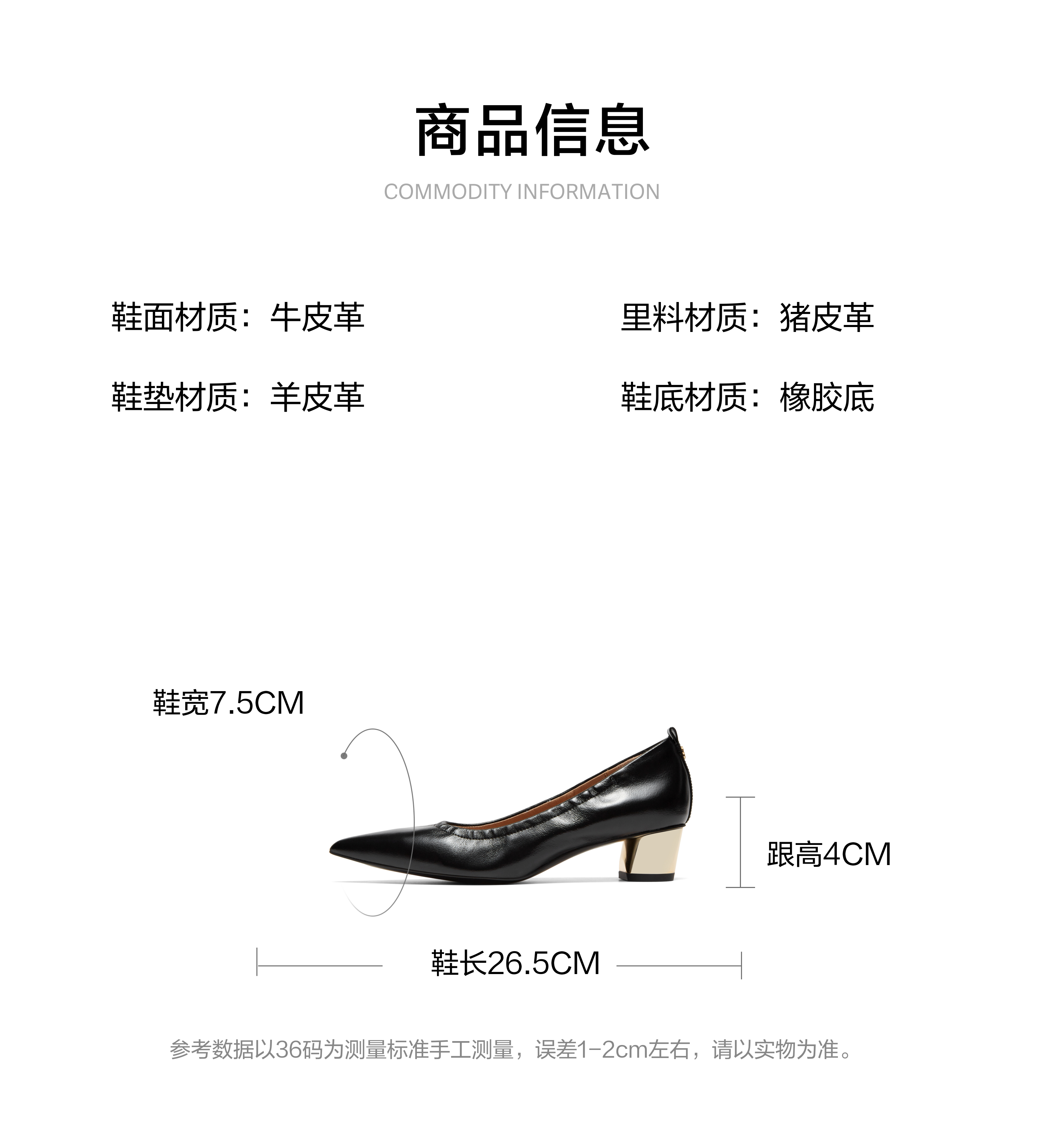| 风格:商务休闲 | 年份:2024年 | 色系:黑色 | 参考标准尺码:36码 | 跟高数值:4CM |