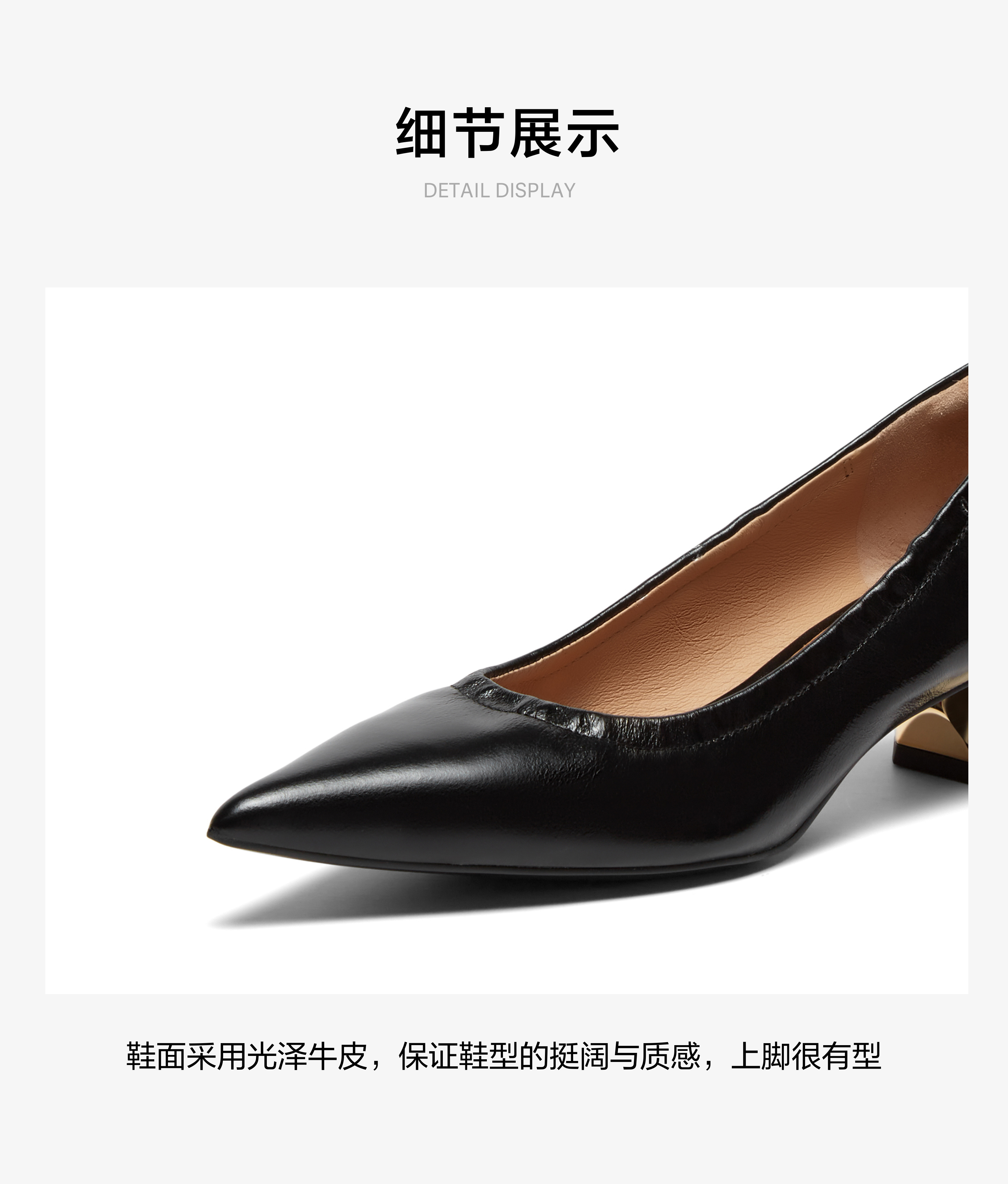 | 上市时间:2024年秋季 | 鞋类流行款式:浅口鞋 | 鞋头款式:尖头 | 执行标准:皮鞋 QB/T1002-2015 | 跟高范围:中跟鞋(3-5CM) |