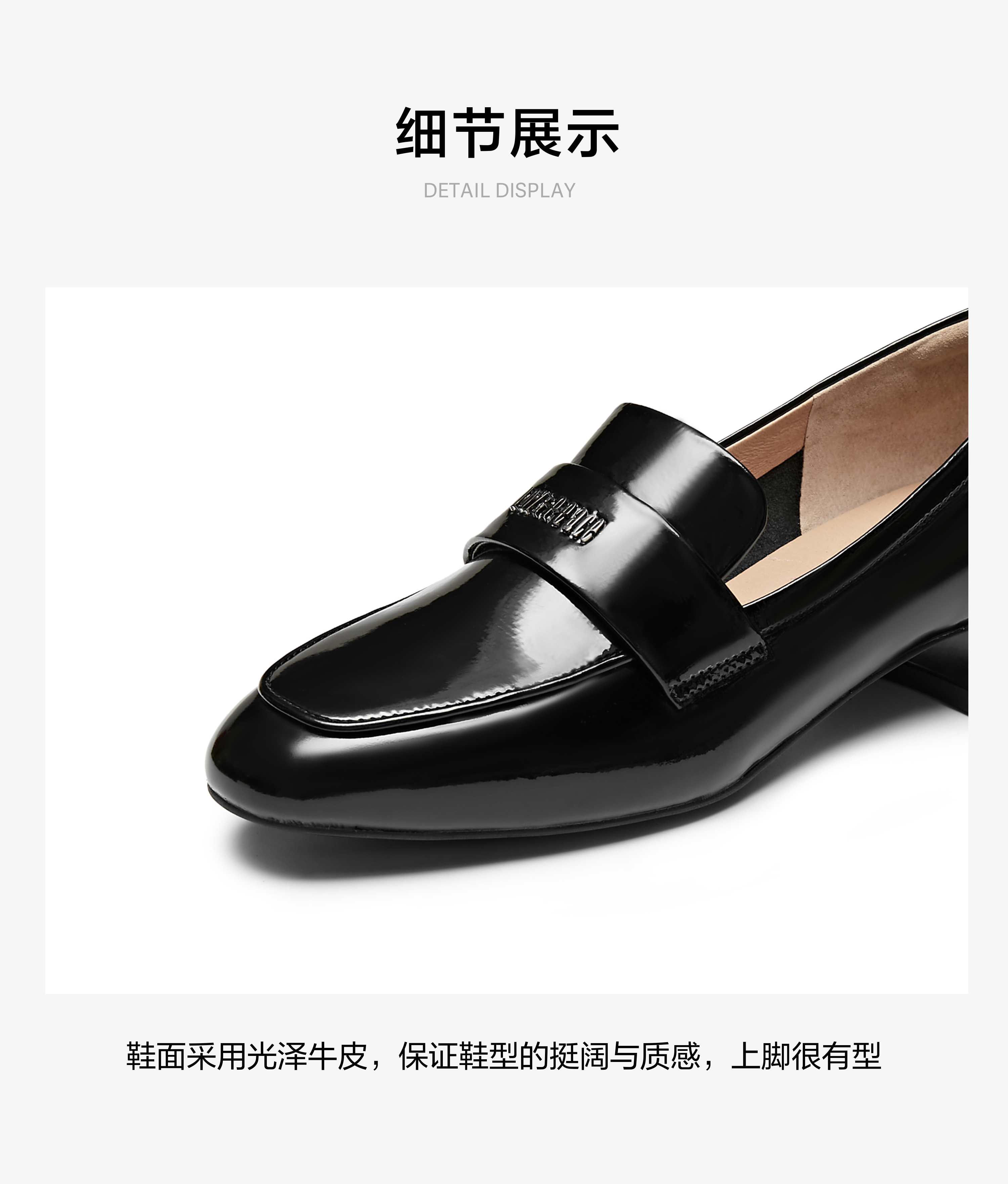 | 上市时间:2024年秋季 | 鞋类流行款式:乐福鞋 | 鞋头款式:圆头 | 执行标准:皮鞋 QB/T1002-2015 | 跟高范围:中跟鞋(3-5CM) |