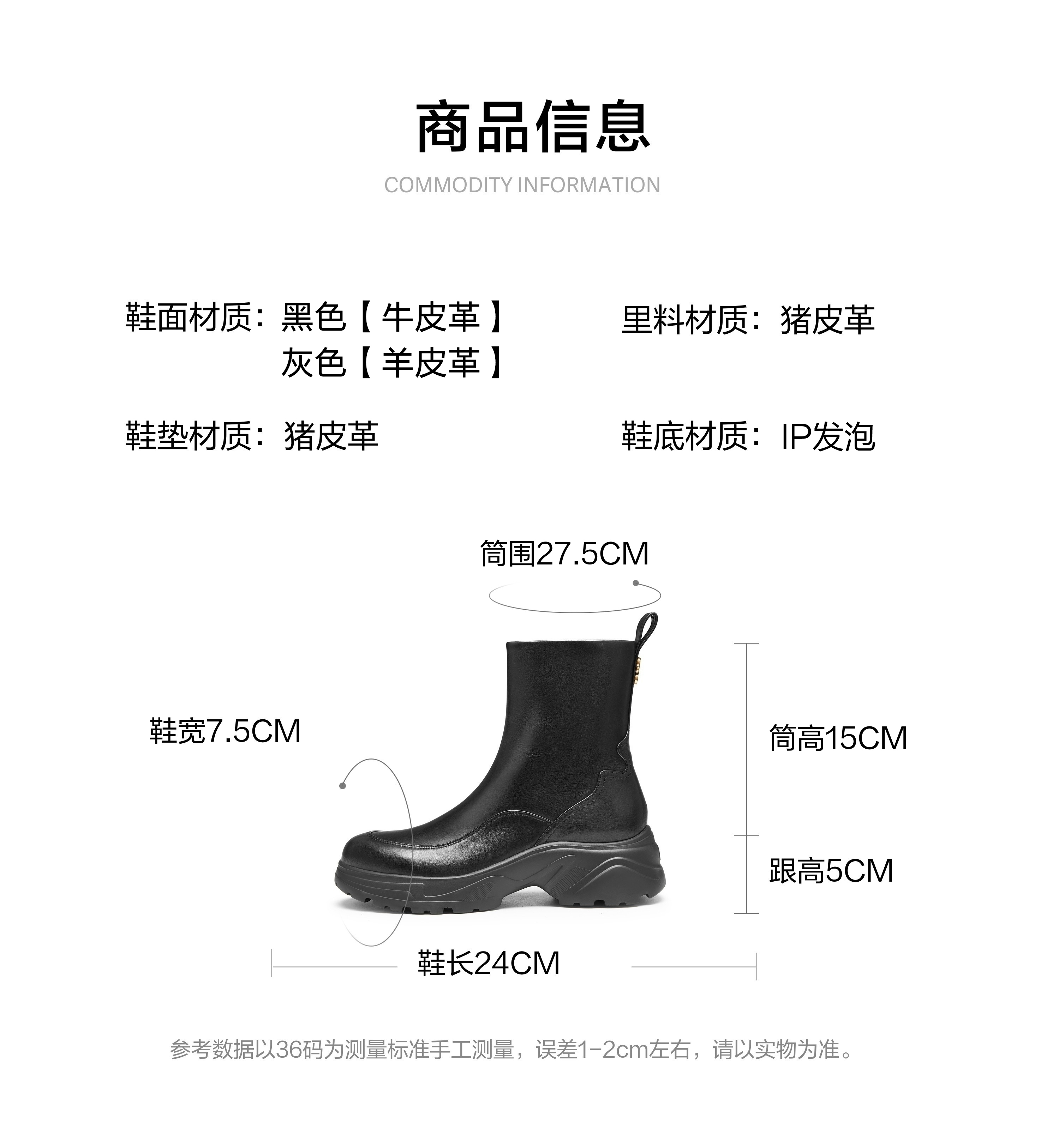 | 跟高数值:5CM | 筒高数值:15CM | 性别:女子 | 靴筒筒面材质:牛皮革 | 里料材质:猪皮革 |