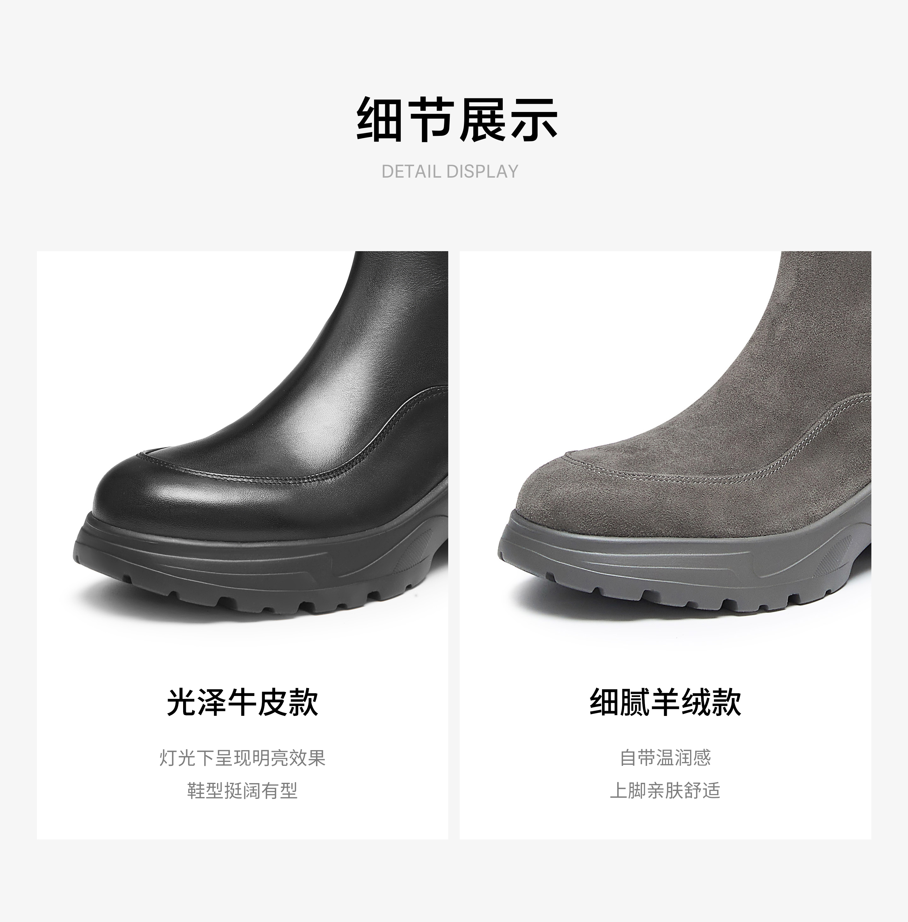 | 鞋底材质:IP底发泡底 | 靴筒内里材质:猪皮革 | 内增高:无 | 鞋面材质:牛皮革 | 适用场合:办公室日常休闲 |
