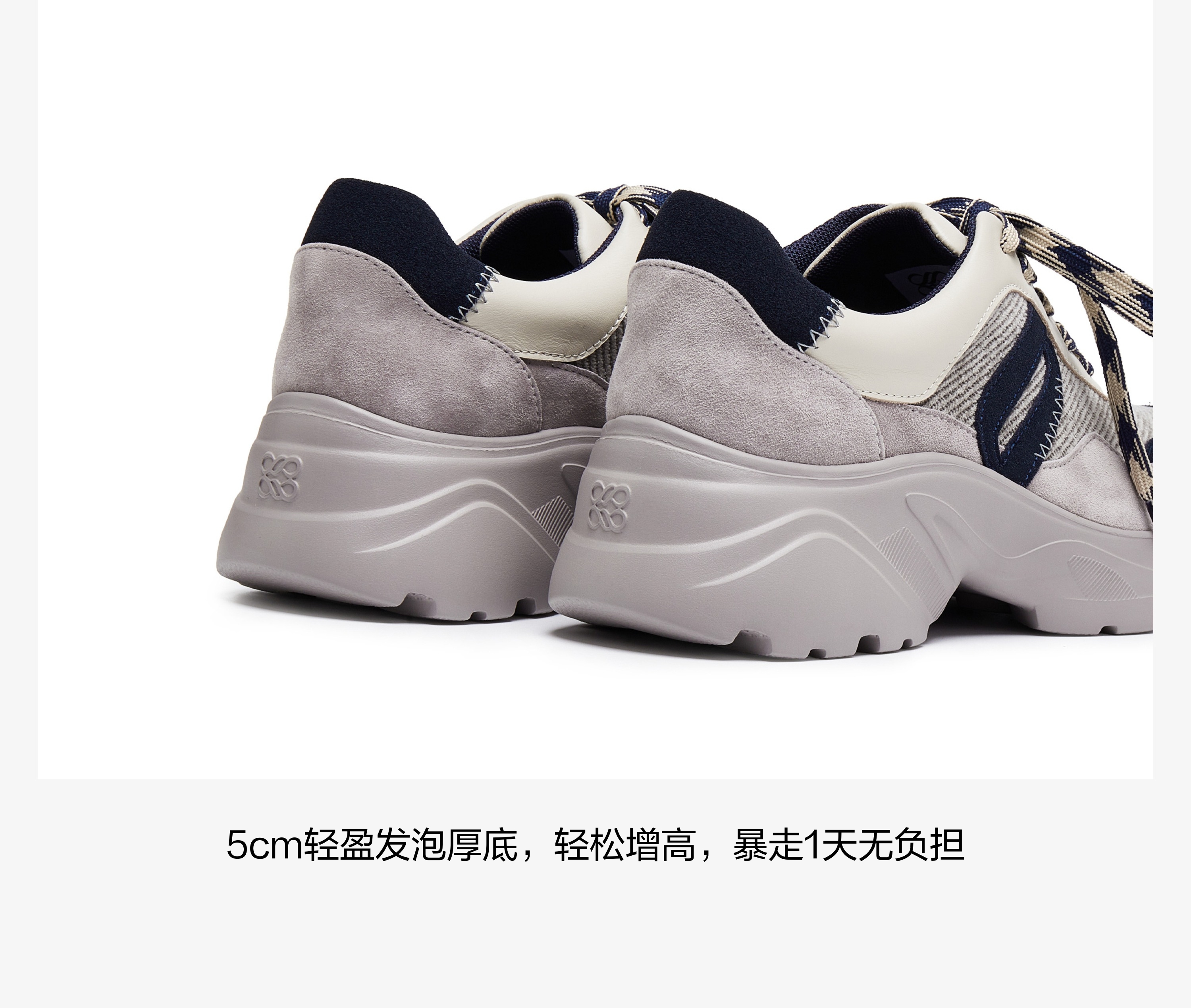 | 鞋面内里材质:织物 | 色系:灰色 | 跟高数值:5CM | 配跟:无 | 性别:女子 |