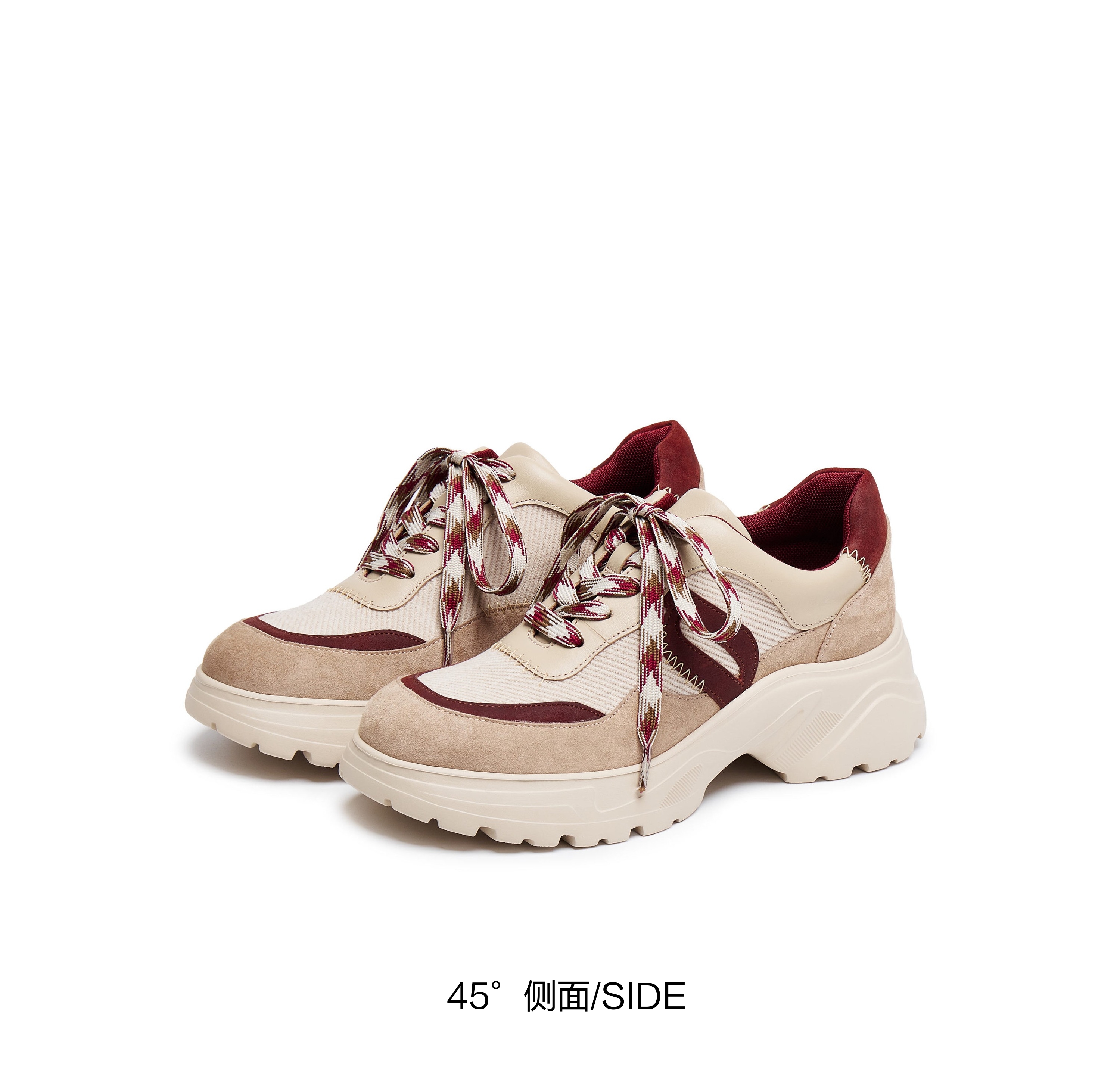 | 鞋头款式:圆头 | 鞋底材质:IP发泡底 | 鞋面图案:拼色 | 鞋跟形状:厚底 | 鞋面材质:织物羊皮革牛皮革 |