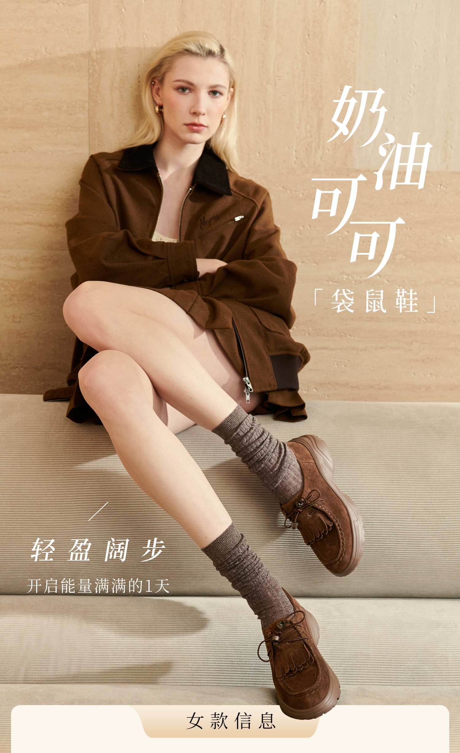 | 风格:可爱休闲 | 色系:咖啡色 | 跟高数值:5CM | 配跟:无 | 性别:女子 |
