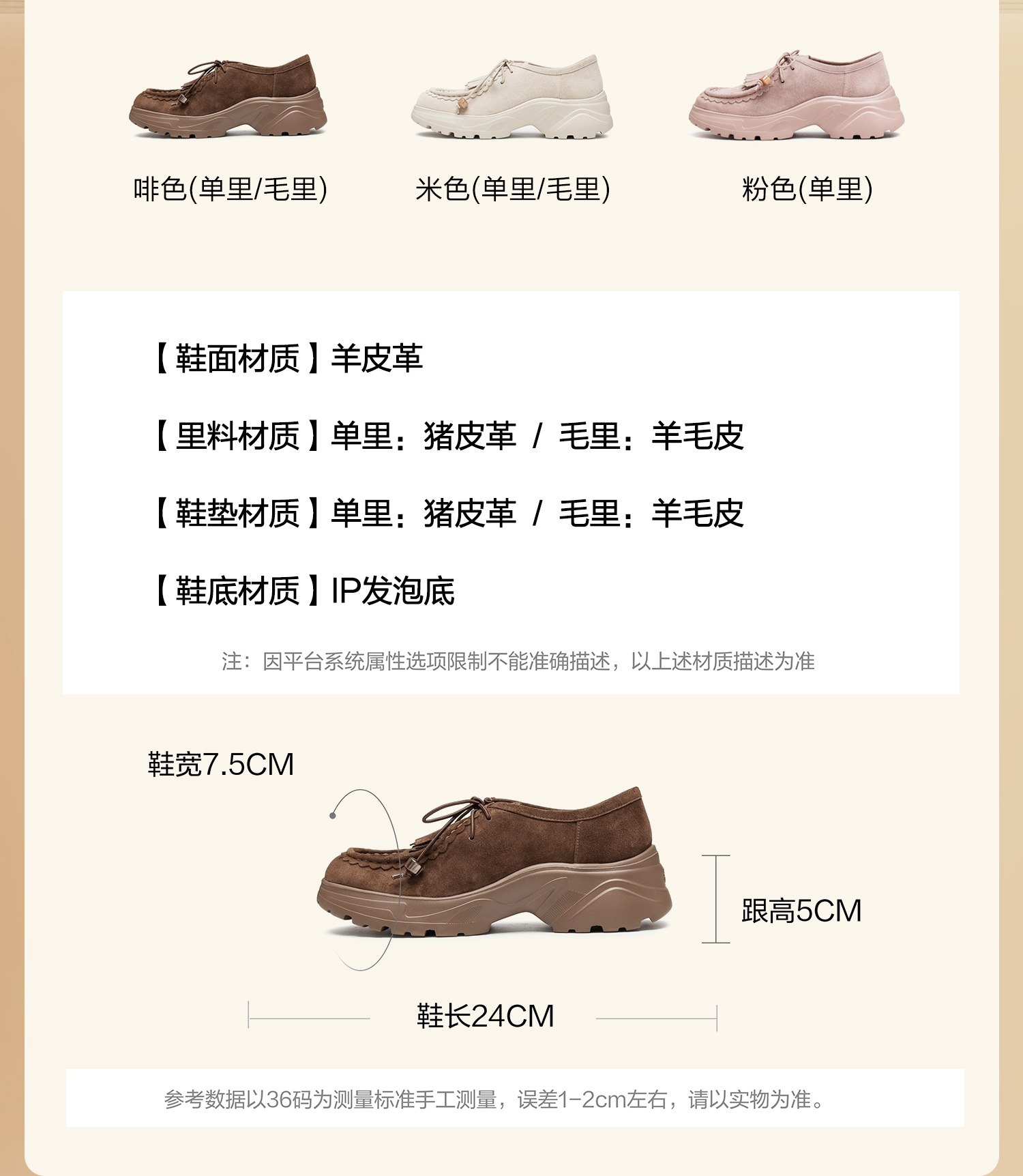 | 风格:可爱休闲 | 色系:米色 | 跟高数值:5CM | 配跟:无 | 性别:女子 |