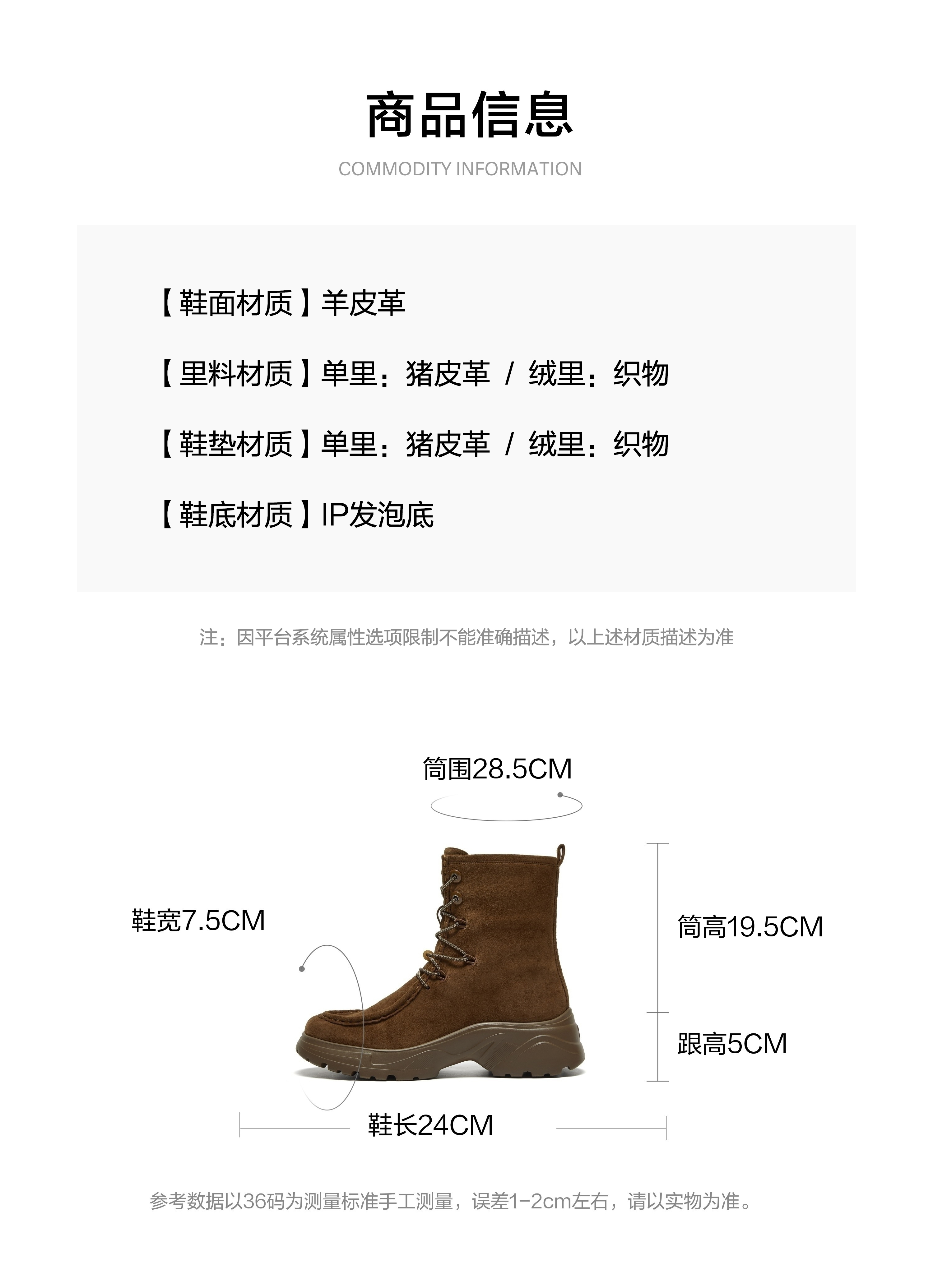 | 款式季节:冬季 | 前掌高度:3CM | 皮质特征:羊皮革 | 防水台高度:无 |