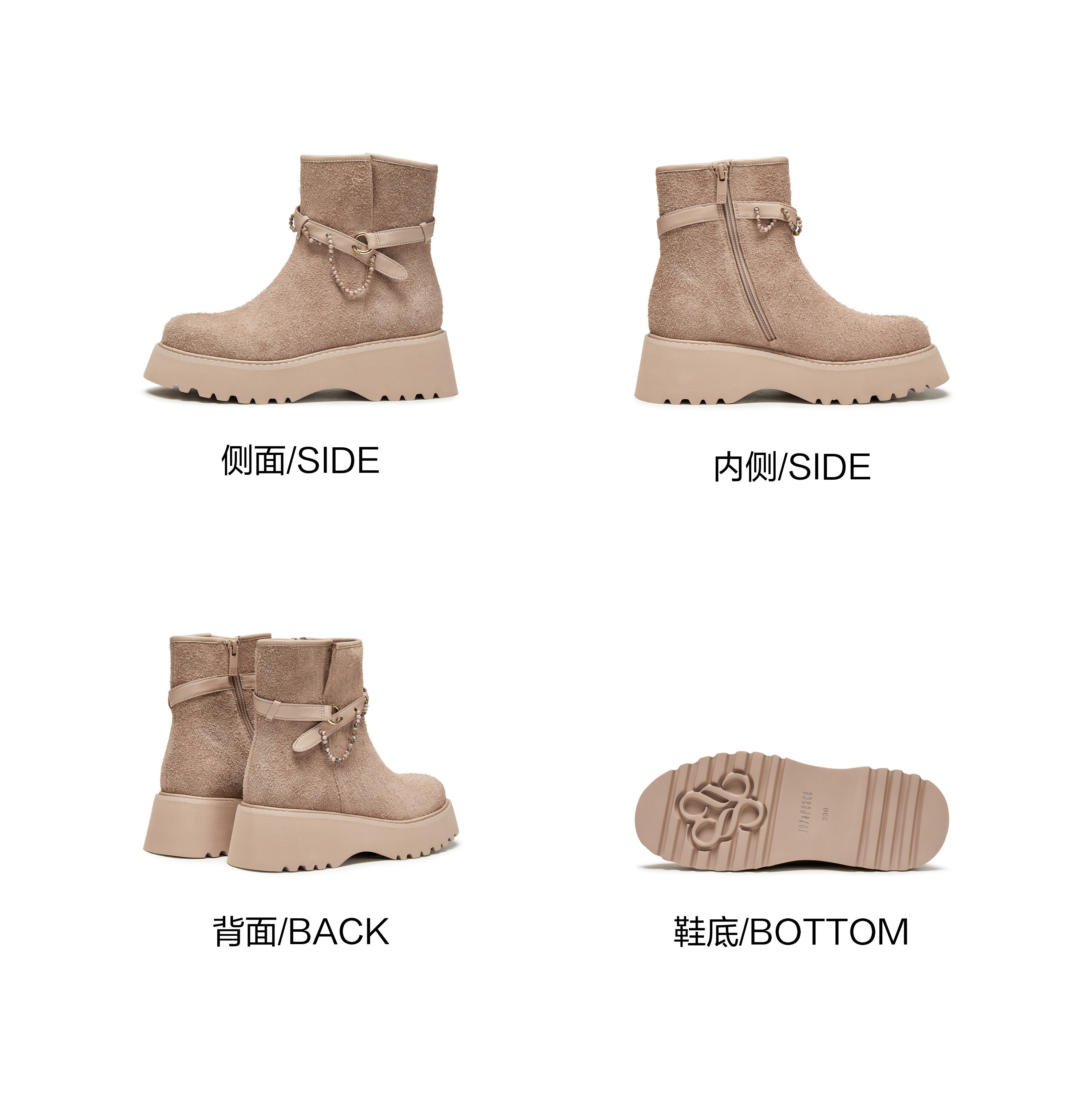 | 鞋底材质:EVA发泡 | 靴筒内里材质:猪皮革 | 内增高:无 | 鞋面材质:羊皮革牛剖层革 | 闭合方式:侧拉链 |