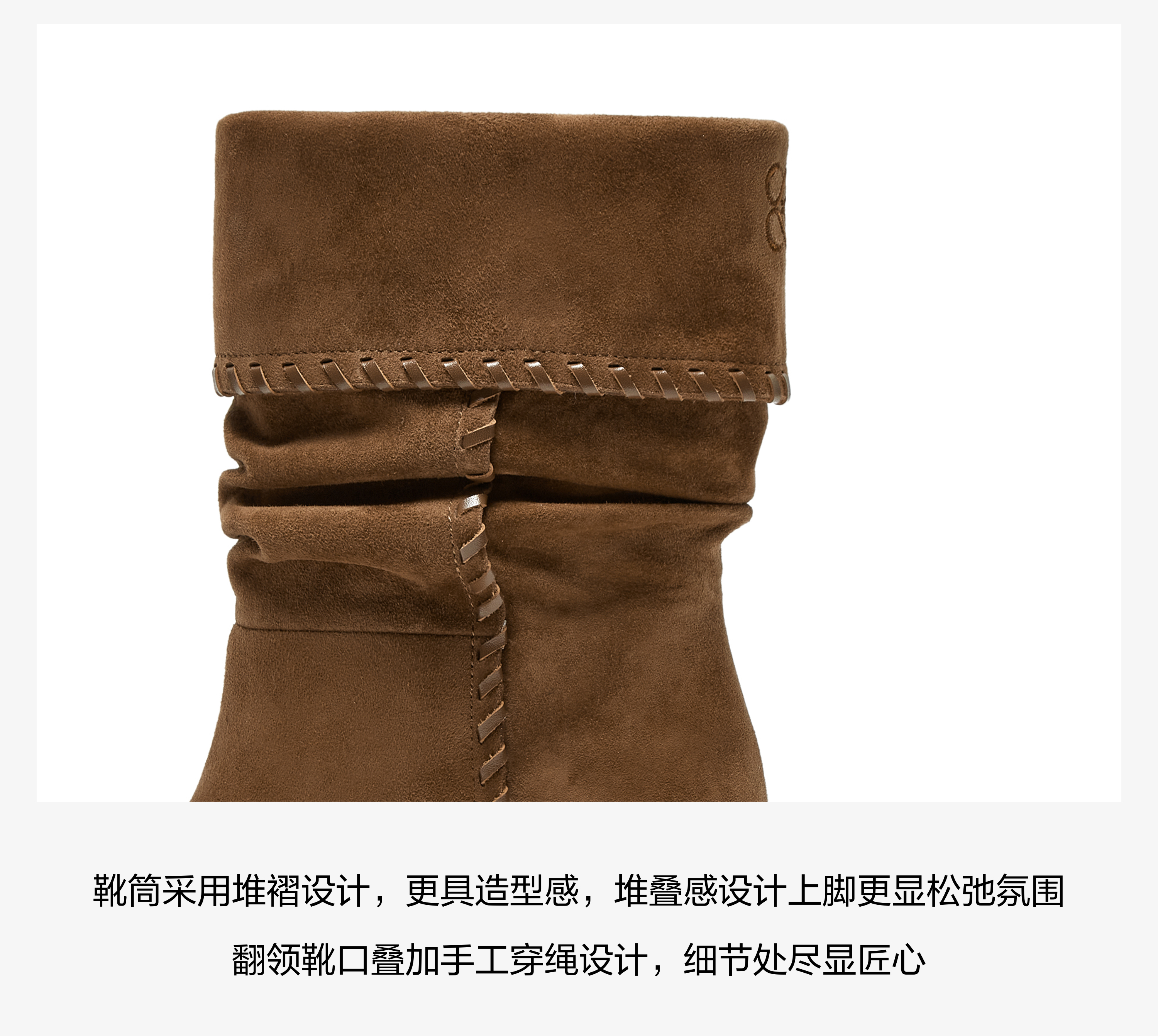 | 鞋底材质:橡胶底 | 靴筒内里材质:猪皮革 | 内增高:无 | 鞋面材质:羊皮革 | 闭合方式:套筒 |