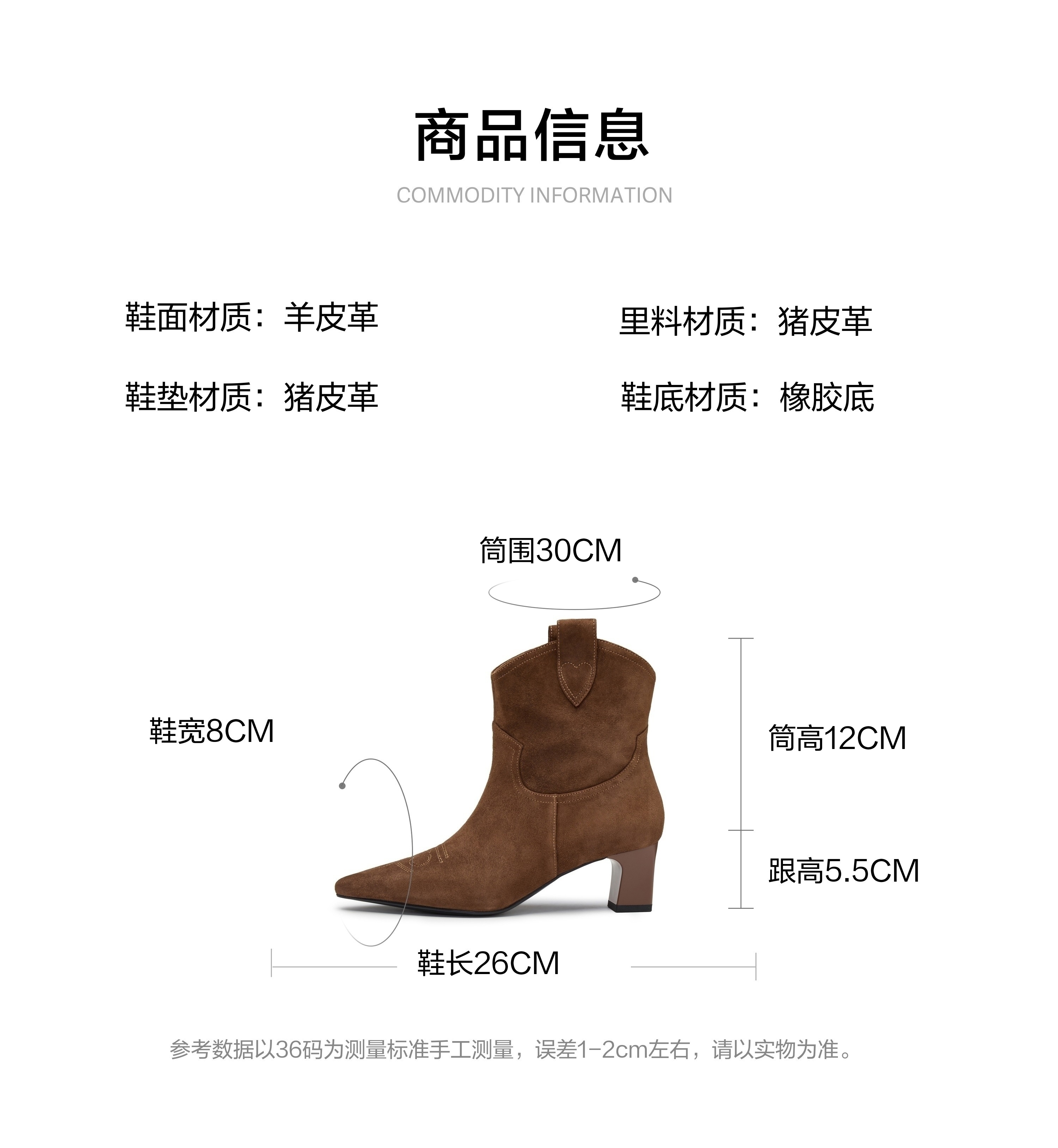 | 帮面材质:羊皮 | 配跟:无 | 靴筒口围:30CM | 上市时间:2024年冬季 | 鞋类流行款式:西部靴 |