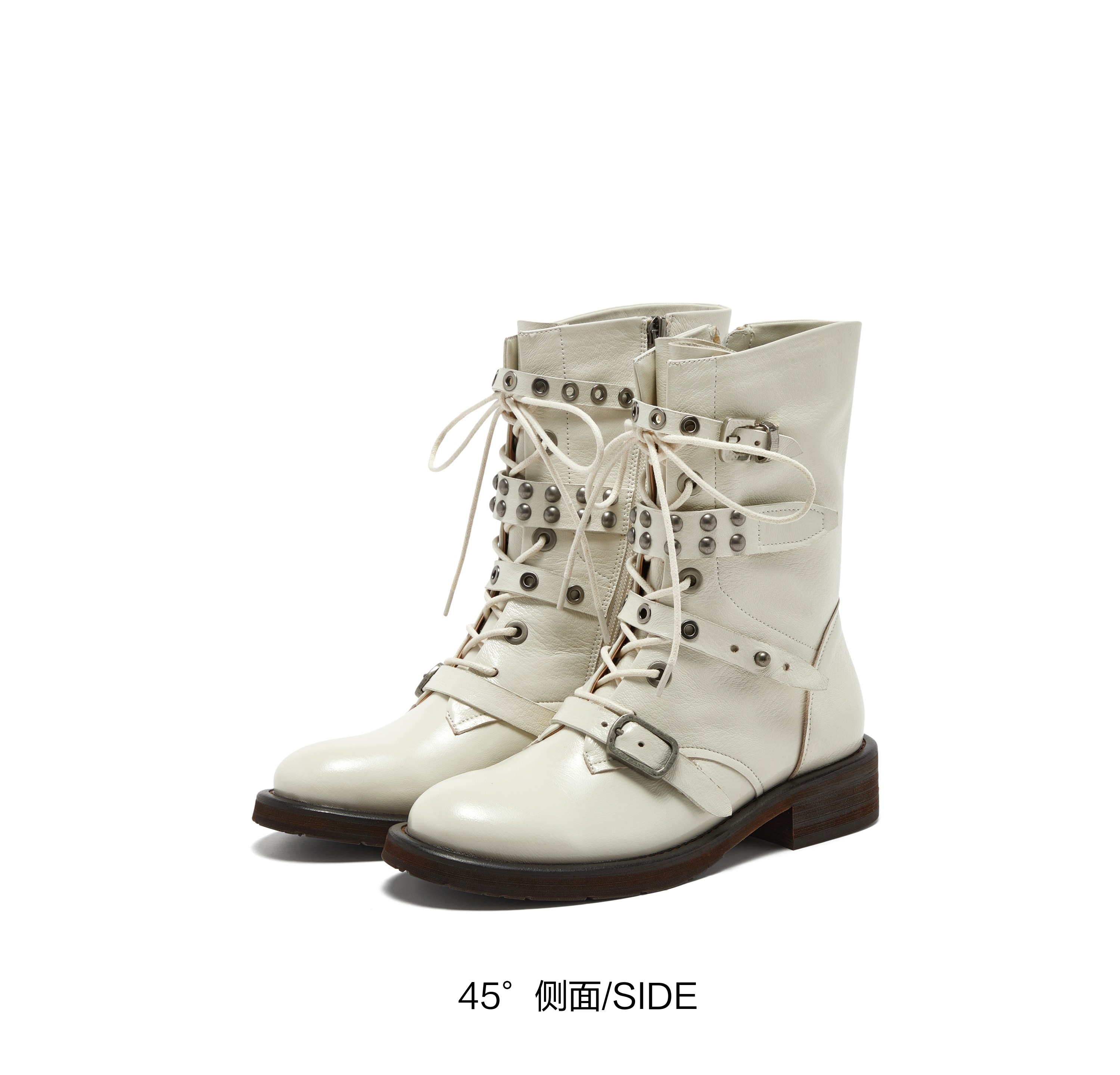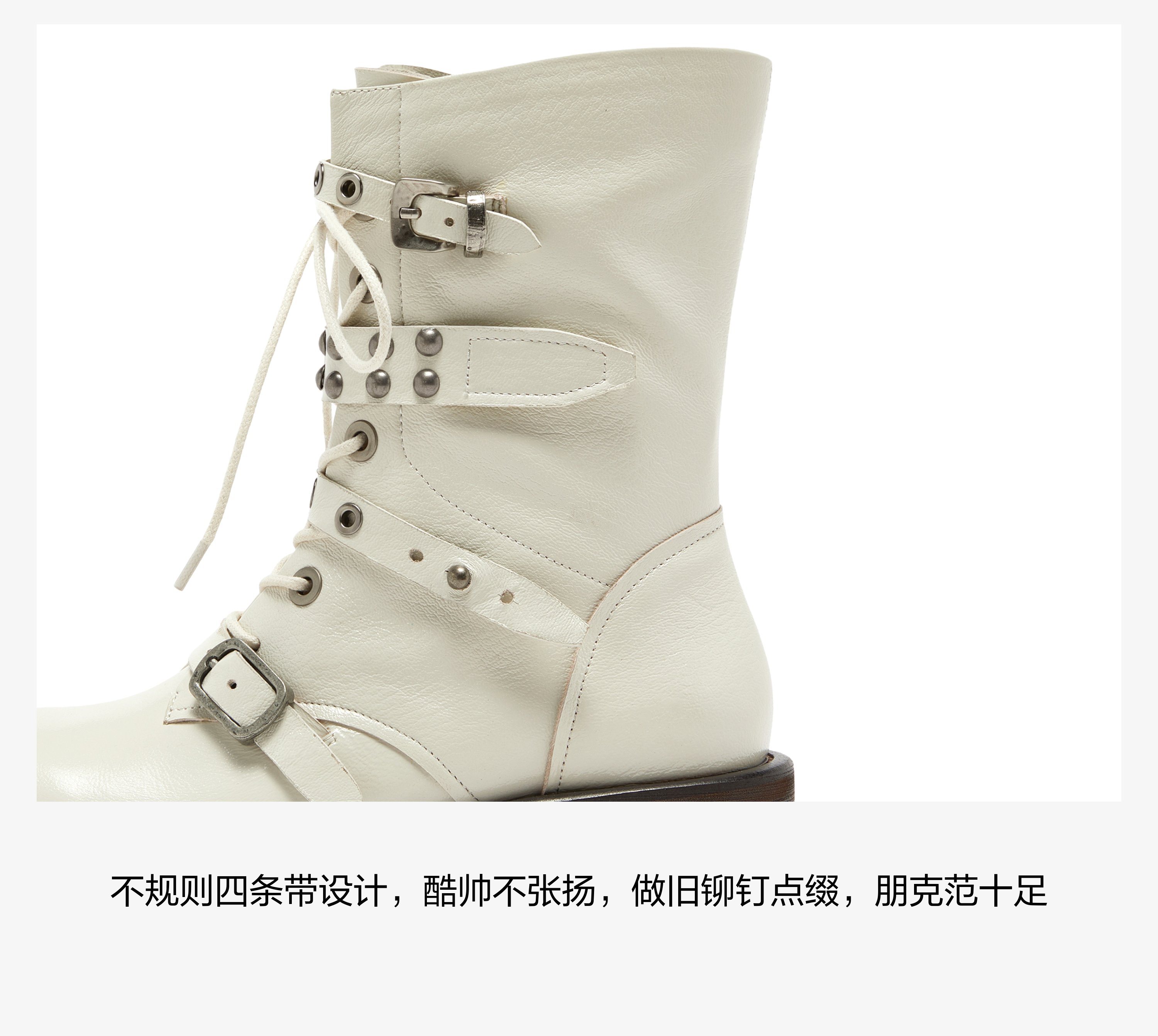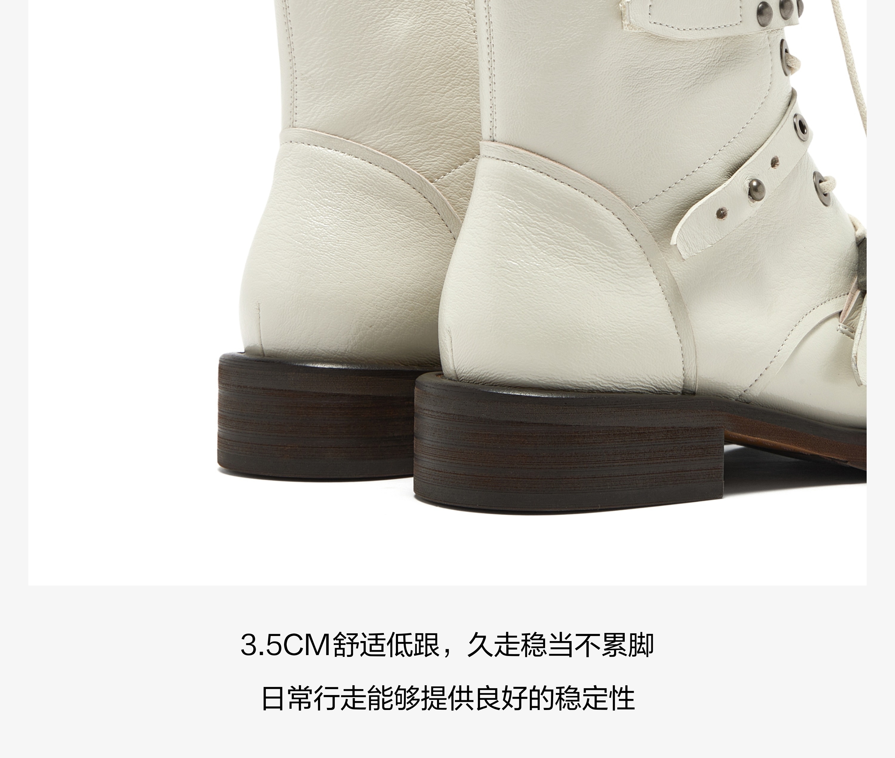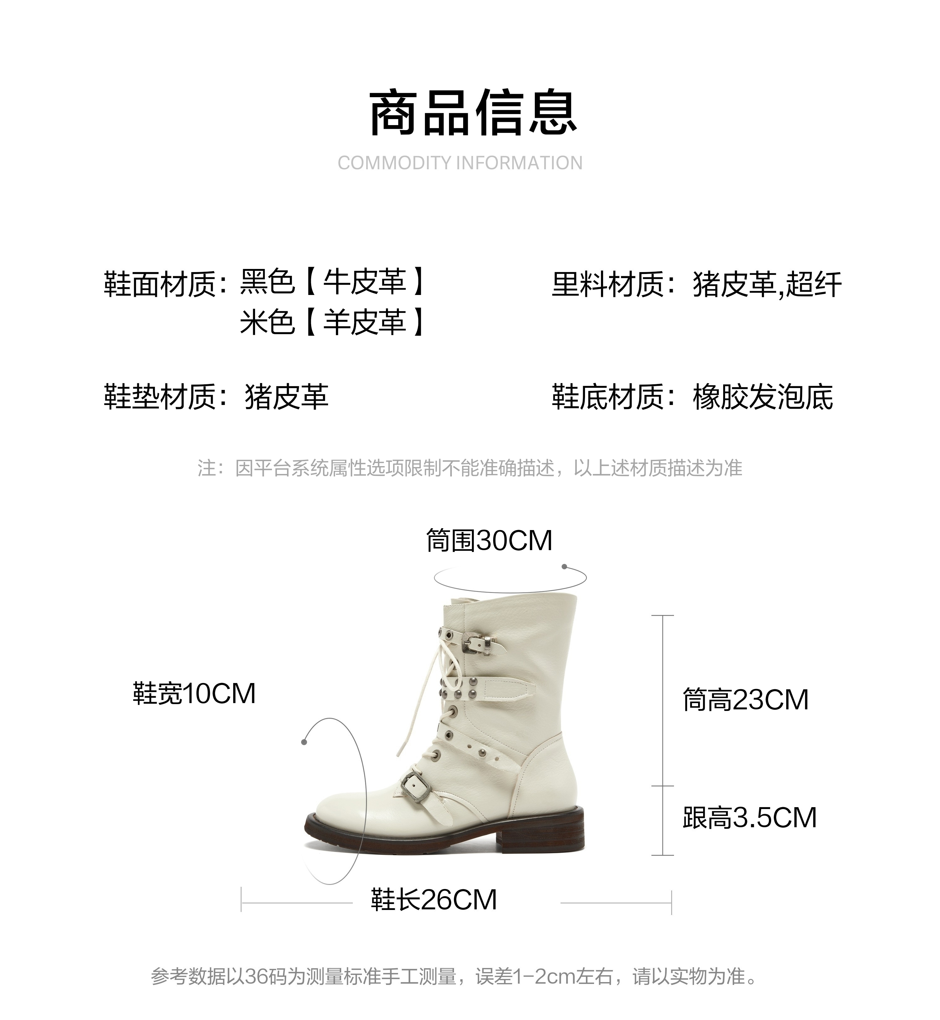 | 风格:帅气 | 鞋面内里材质:超纤猪皮革 | 色系:米色 | 跟高数值:3.5CM | 筒高数值:23CM |