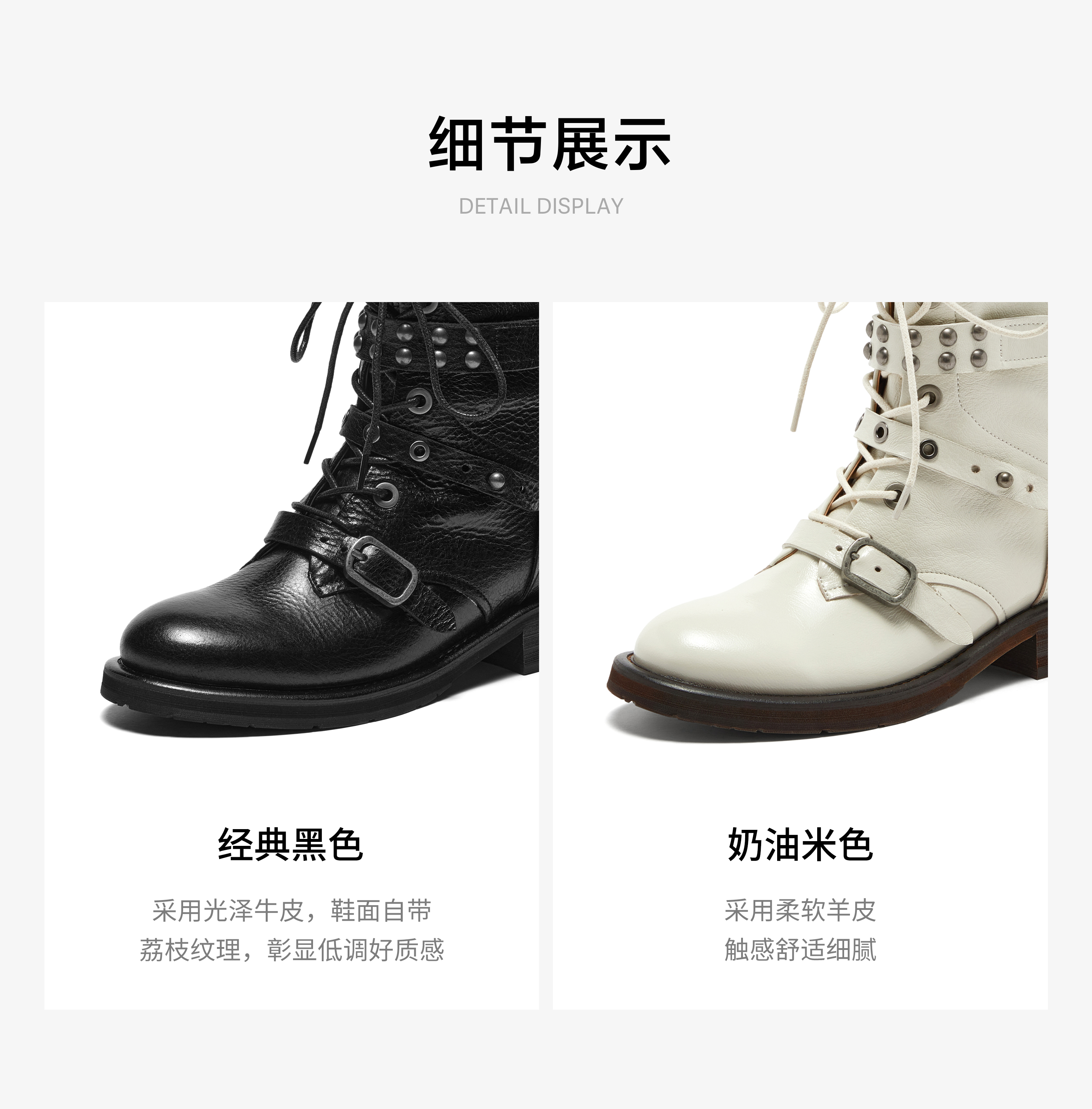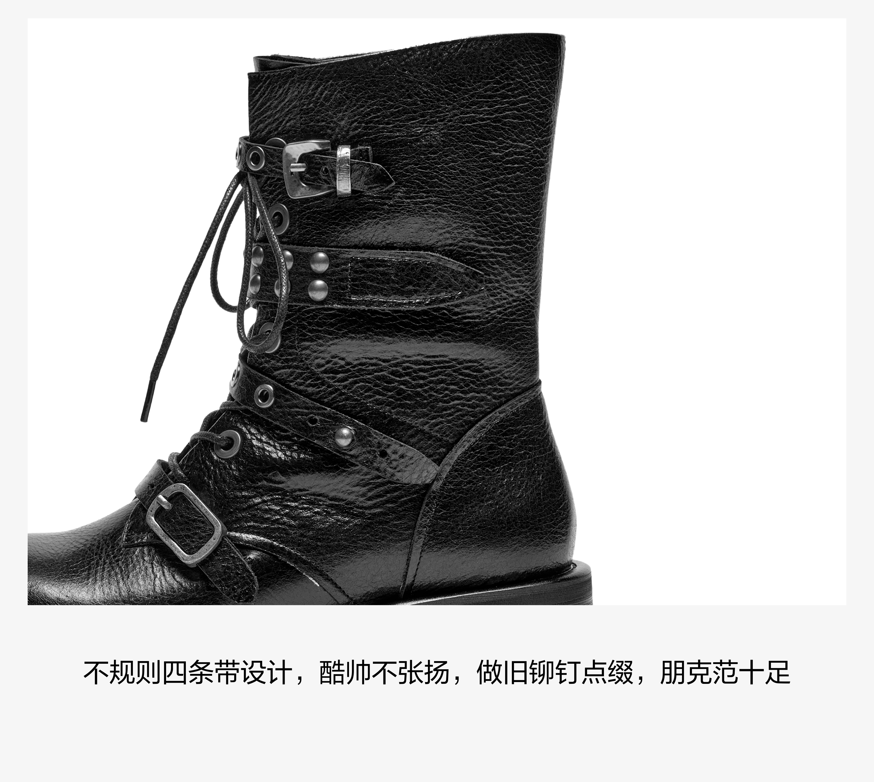 | 鞋底材质:橡胶发泡底 | 靴筒内里材质:超纤猪皮革 | 内增高:无 | 鞋面材质:牛皮革 | 闭合方式:侧拉链 |