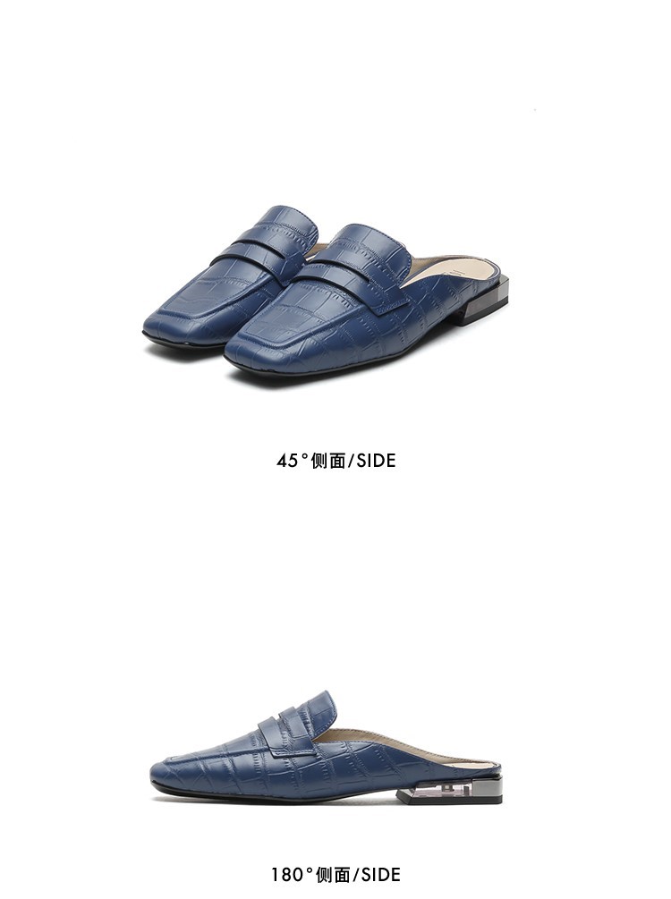 | 皮质特征:压花皮 | 前掌高度:无 | 防水台高度:无 | 鞋类流行款式:穆勒鞋 |