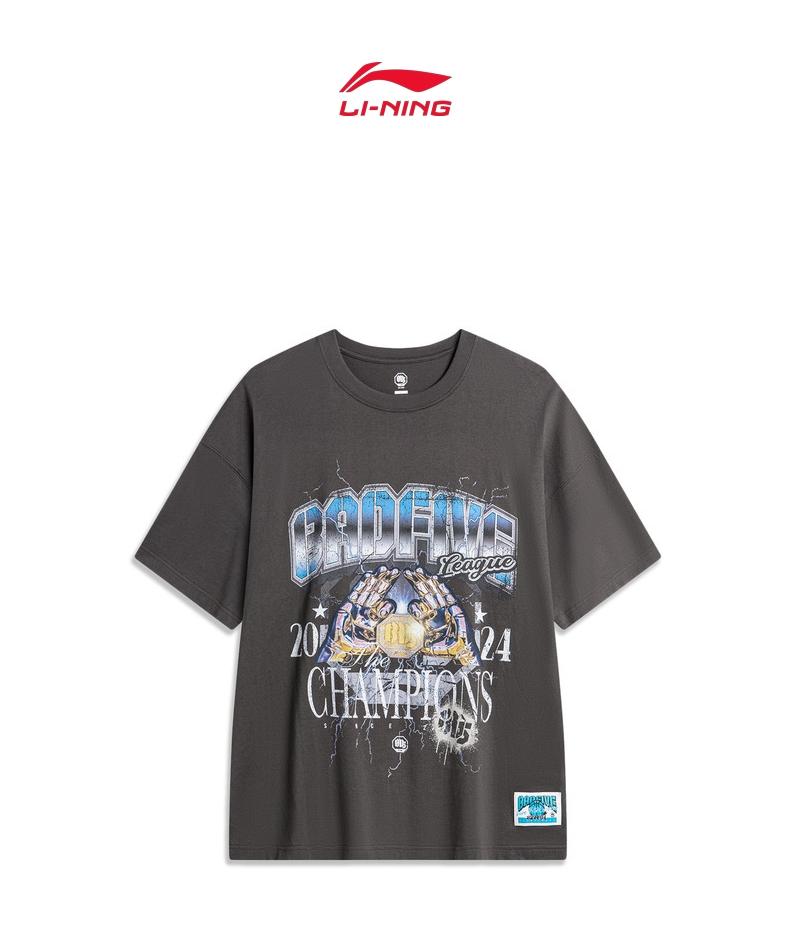 LI-NING李宁2024男子短袖文化衫无领短TAHSU415-1
