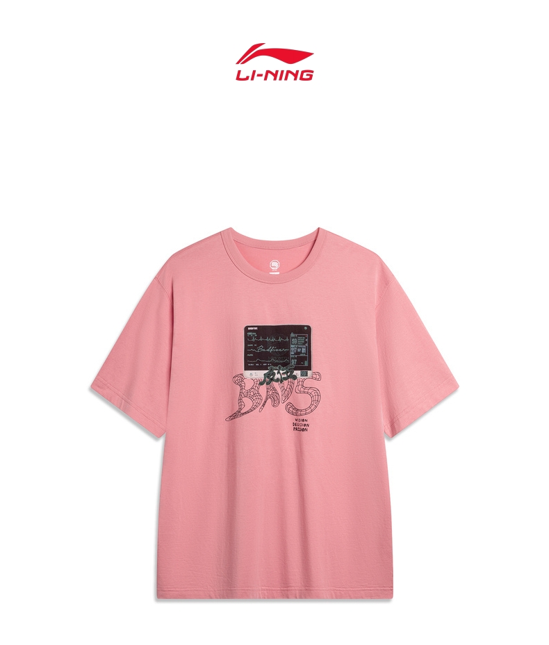 LI-NING李宁2024男子短袖文化衫无领短TAHSU431-7