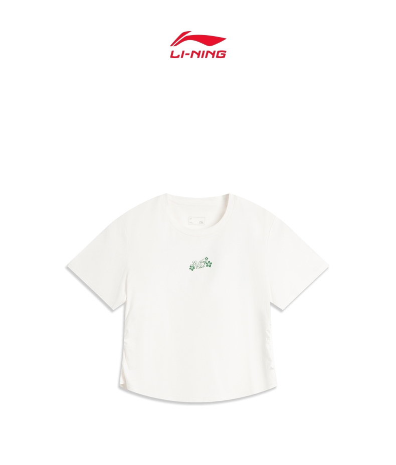 LI-NING李宁2025女子短袖文化衫针织无领短TAHSV410-1
