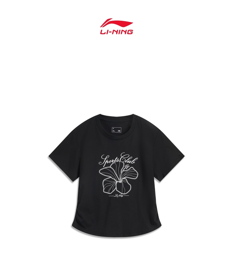 LI-NING李宁2025女子短袖文化衫针织无领短TAHSV410-4