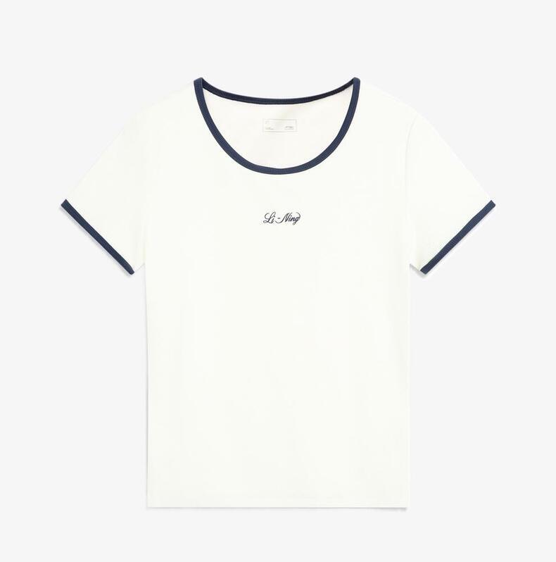 LI-NING李宁2025女子短袖文化衫针织无领短TAHSV466-4