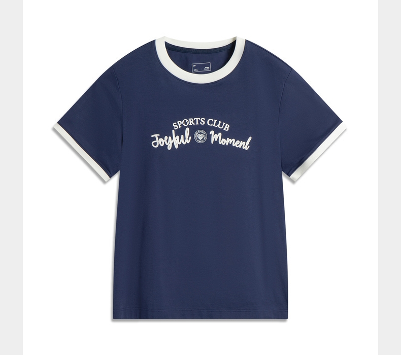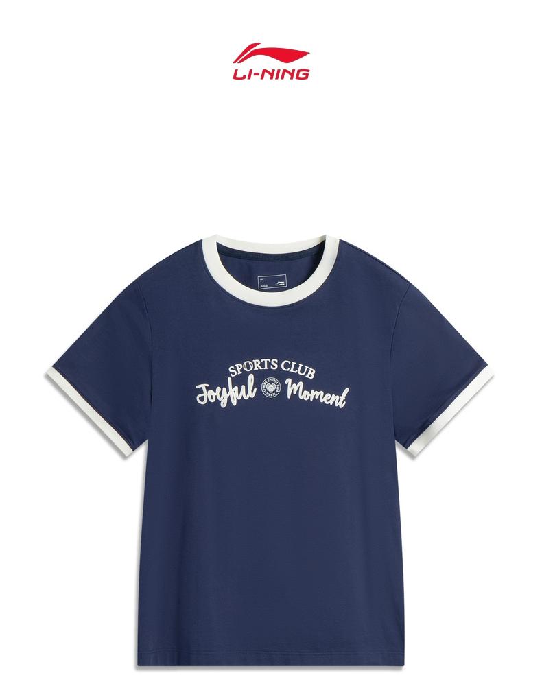 LI-NING李宁2025女子短袖文化衫针织无领短TAHSV472-6